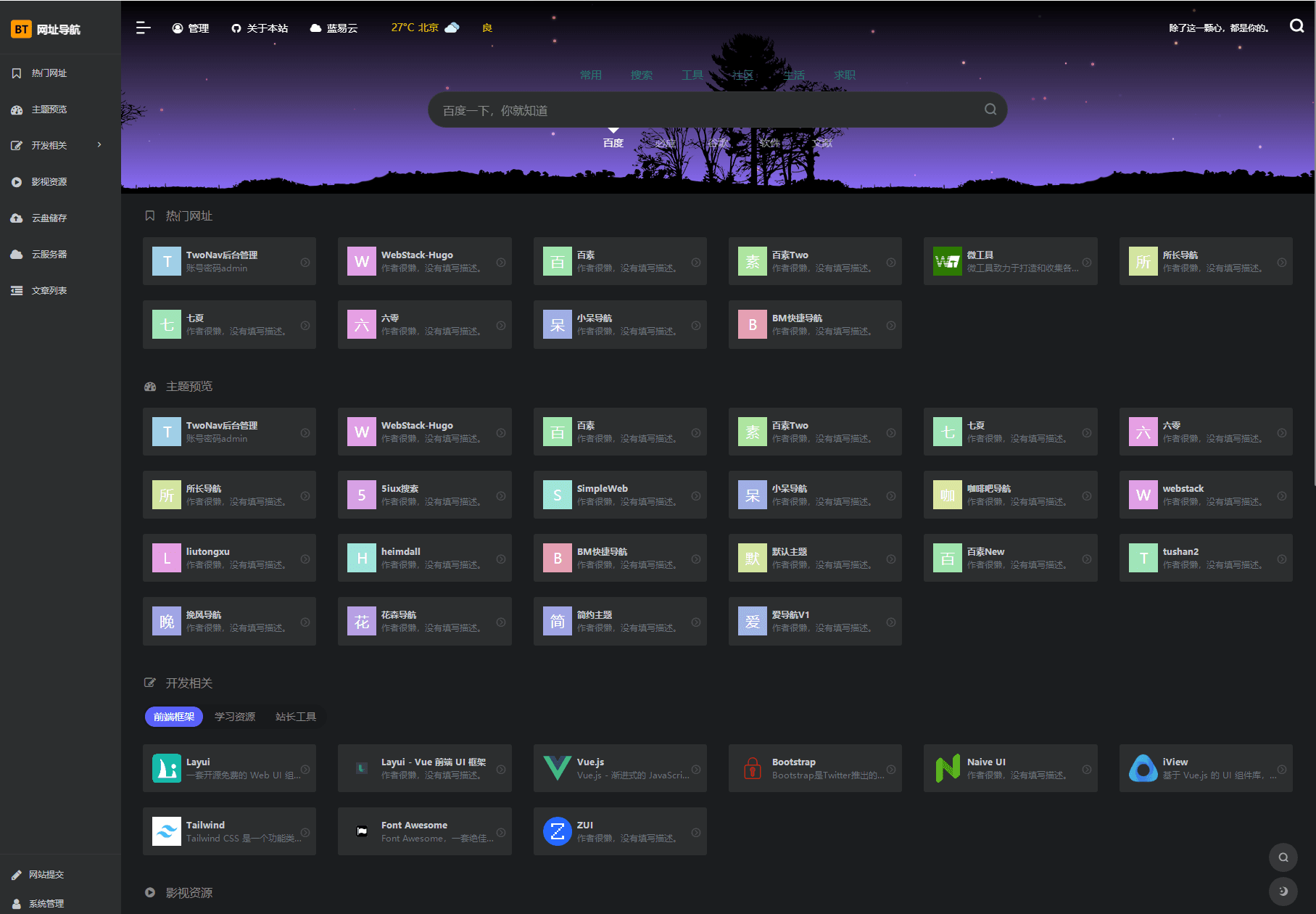 2023全新TwoNav开源网址导航系统源码 已过授权 所有功能可用 测试环境:Nginx+PHP7.4+MySQL5.6 一款开源的书签导航管理程序,界面简洁,安装简单,使用方便,基础功能免费。 TwoNav可帮助你将浏览器书签集中式管理,解决跨设备、跨平台、跨浏览器之间同步和访问困难问题,做到一处部署,随处访问。