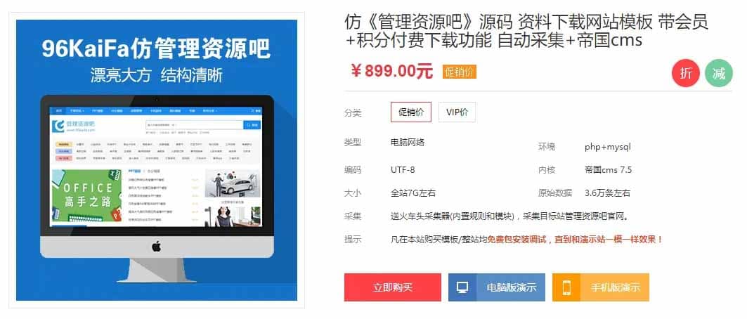 开发环境:帝国cms7.5 空间支持:php+mysql 管理资源吧,为中小企业管理者提供全方位的管理资料下载服务; 是一个所有资料免费下载,免注册、免登陆、免积分的公益性的管理知识共享平台。 此站风格挺漂亮的,面向国内庞大办公用户群体的资源类网站,都是不差钱的,发展会员收费下载, 可以坐享分成。该站权重3,收录52万+ ,不吹不黑此类资源养着慢慢发展壮大也是不错的。 稍懂点的做收费类的赢利很快的,当然大神类的就更不用说了。