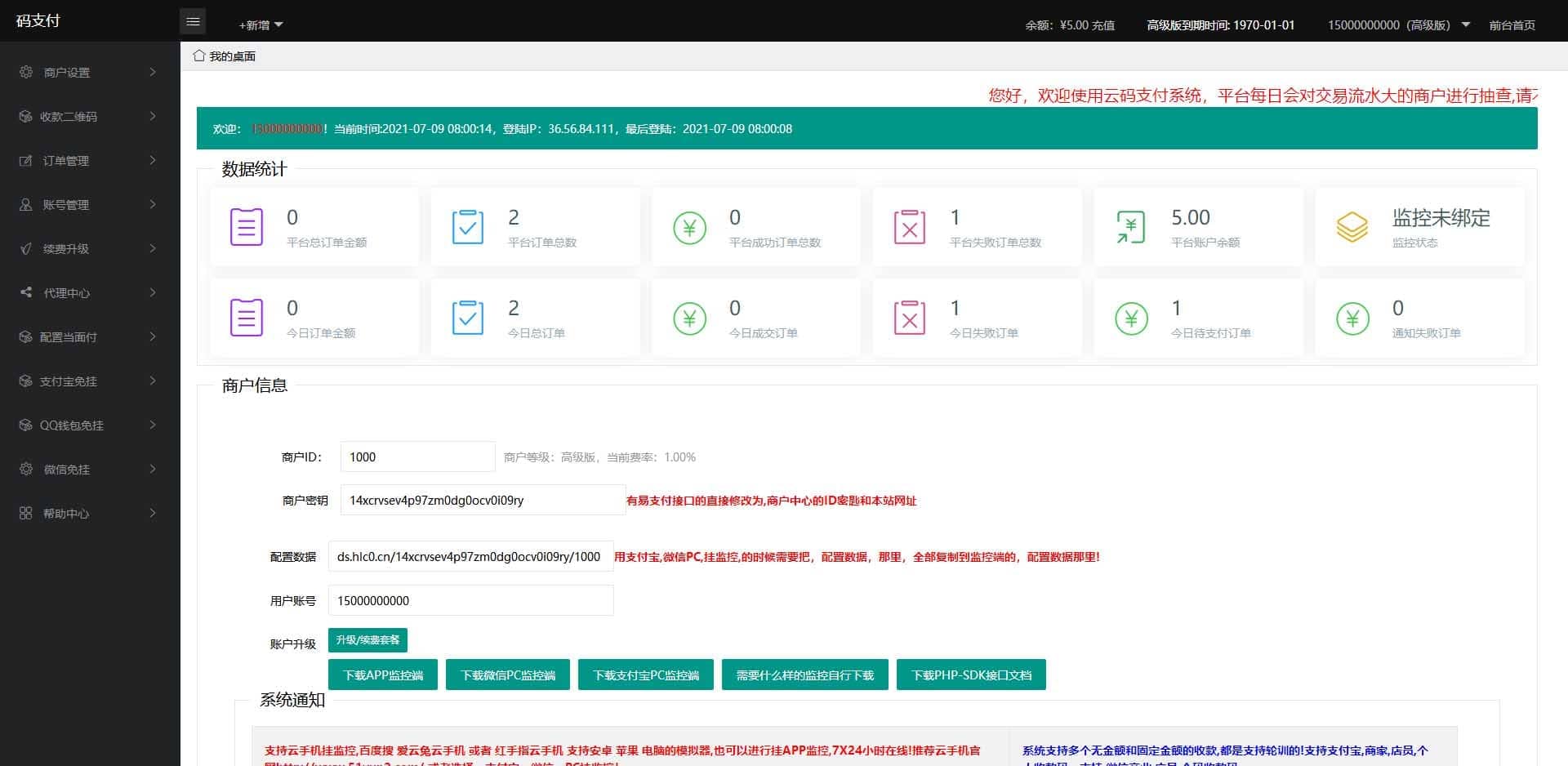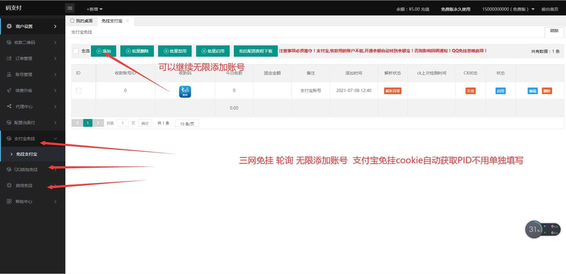 找别人买的 买的时候说 帮打包APP 结果没给我 泛滥了算了 会做的帮忙给做个 其实也用不上APP 但是 毕竟有这玩意 强迫症非想要一个 三网免挂轮询 无限添加账号 收款一次更换一个号 无限轮询 二开增加QQ收款 QQ免挂 当面付收款
