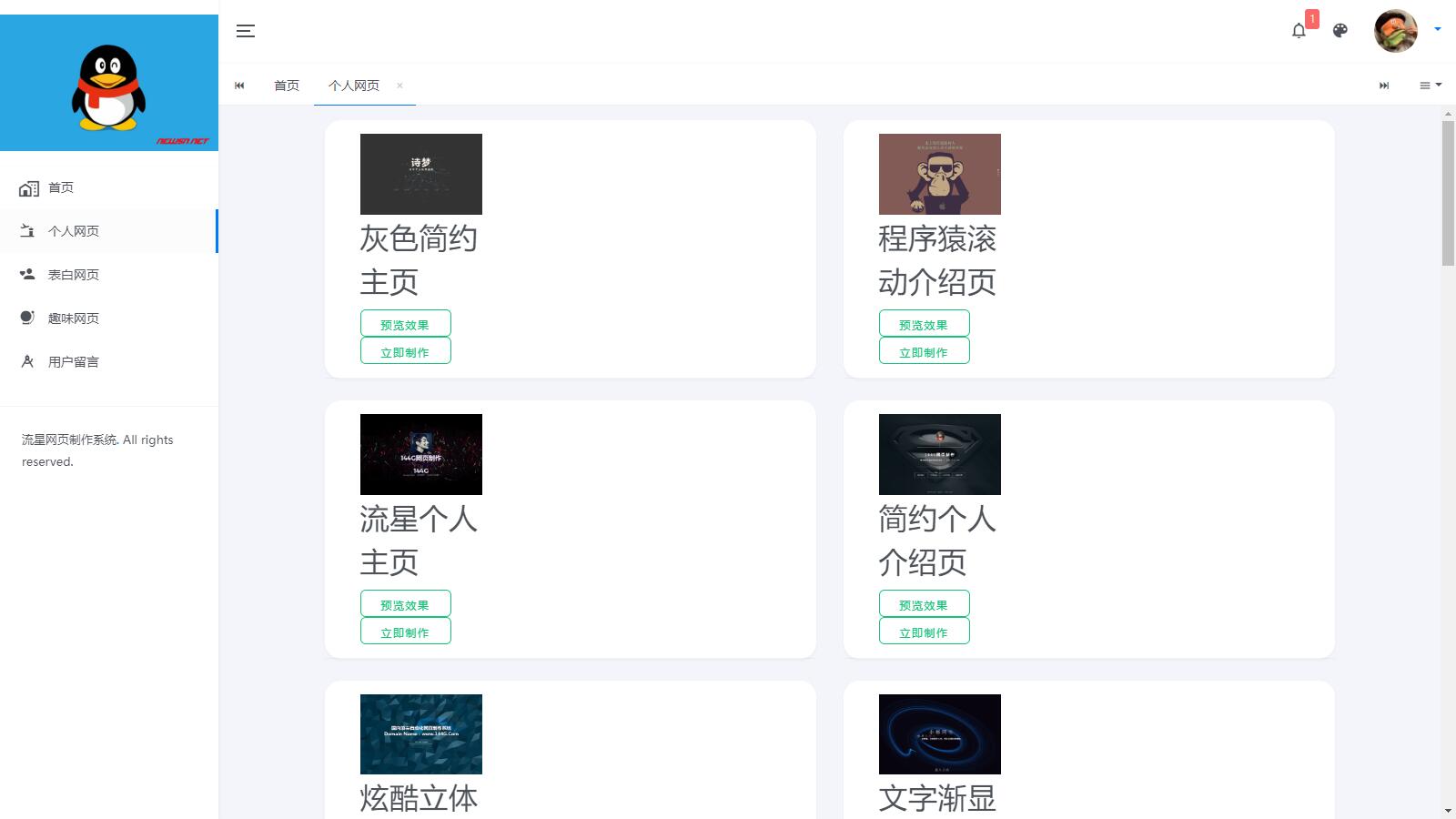 所有模板经过精心审核与修改,完美兼容小屏手机大屏手机,以及各种平板端、 电脑端和360浏览器、谷歌浏览器、火狐浏览器等等各大浏览器显示。为用户使用方便考虑, 全自动网页制作系统无需繁琐的注册与登入,直接选择喜欢的模板输入网页信息即可制作, 并且所以模板制作不收取任何费用,无限制、免费制作所有网页。使用光年后台管理框架重构了这个系统。