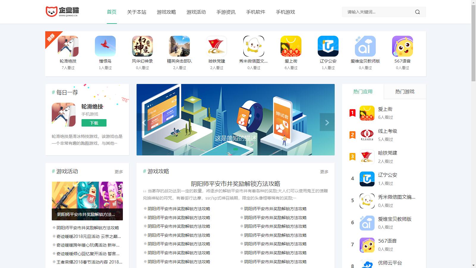 手机软件APP下载类网站pbootcms模板 游戏软件应用网站源码 模板自适应手机端 pbootcms内核开发的网站模板,该模板适用于手机APP网站、游戏软件网站等企业, 当然其他行业也可以做,只需要把文字图片换成其他行业的即可; 自适应,同一个后台,数据即时同步,简单适用!附带测试数据! 友好的seo,所有页面均都能完全自定义标题/关键词/描述,PHP程序,安全、稳定、快速;用低成本获取源源不断订单!
