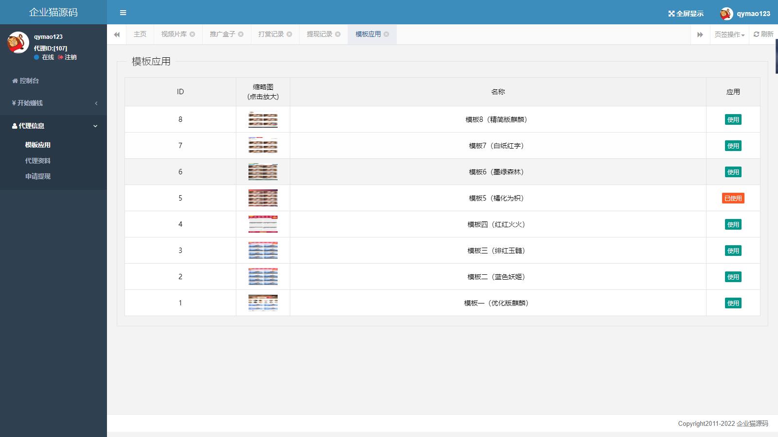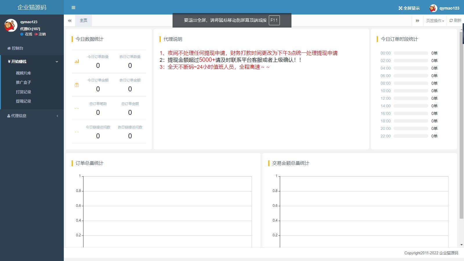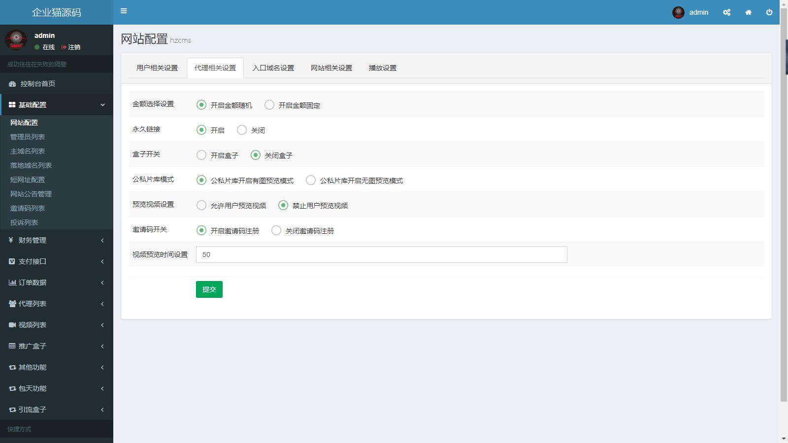 轻松吊打市面上95%的打赏系统 和其他打赏系统比起来强了不是一点半点 完美运营无bug 支付会调没问题,短链接生成没问题,代理后台没问题,价格设置以及试看功能没问题等等 以上为搬运过来的简介,以下为71教程测试结果。 企业猫搭建了下,可以正常进入后台以及代理后台,但后台需要设置的地方比较多。 简单看了下,总后台有几个页面打开显示404,但源码里有相对应的文件,应该不是少文件 可能是企业猫未能正确设置后台部分功能,或者环境啥的,导致几个页面显示404 一般后台设置正确后,前往代理后台即可生成前台链接, 但企业猫被比如什么落地域名,代理域名,盒子域名,入口域名啥的,搞得烦不胜烦。就没详细测试
