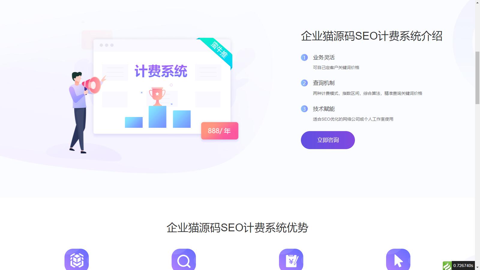 1、会员管理: 该系统分为三个级别的会员流程:总站管理员、代理与会员(会员有普通会员、中级会员和高级会员三个等级)。 总站管理员可以添加代理用户并为其充值余额,代理用户可以为普通用户充值余额。 代理用户可以设置关键词查询比例,例如,如果总站向代理用户收费10元, 则代理用户可以设置普通用户的查询比例为200%,那么用户添加该关键词的价格将为20元, 其中10元是代理用户的利润。代理用户只能看到自己的下级会员,并且设置的比例只对下级会员有效。 如果代理用户没有设置比例,则默认按照总站给代理的价格展示给用户。 2、网站管理: 总站、代理和普通用户都可以添加网站。在网站列表页上,可以查看网站的基本信息, 如域名、网站名称、所属会员、注册时间、关键词数量、达标关键词数量、今日消费、历史消费以及网站的启用与禁用状态。 3、关键词管理: 总站、代理和普通用户都可以添加网站关键词。其中, 普通用户只能通过关键词价格的方式添加关键词,而普通用户添加的关键词需要经过总后台审核。 4、关键词查价: 系统支持手动输入价格和根据关键词指数查价两种模式。其中, 根据关键词指数查价需要在后台输入指数范围,并且需要用户自行购买相应的查询接口与我司扣费系统进行对接。 需要注意的是,所使用的关键词指数来自站长之家,与百度、360等官方网站上的数据可能有出入,请谨慎使用。 5、关键词排名: 对于进行搜索引擎优化的用户来说,经常会遇到异地排名不准确或查不到排名的情况。 市面上的大多数扣费系统都采用单节点查询技术或调用站长之家、5118等查询接口,往往出现无法准确查询的问题。 而我们的系统采用多节点排名查询技术,在全国范围内部署了七个节点,相比于站长之家、 5118及其他扣费系统,我们的排名查询更加准确。此外,我们还提供排名快照服务, 如果客户的网站在搜索结果前两页,我们的系统将自动截取当前排名快照,给客户更具说服力。 6、公众号查询: 系统支持非认证订阅号、服务号等查询网站排名。只需在公众号对话框内输入网站域名, 公众号会自动将网站的排名情况反馈给用户。下一步,我们将进一步完善公众号功能, 包括余额不足提醒、关键词排名达标推送等功能。 7、财务管理: 后台提供清晰、简洁、明了的财务统计分析。总后台和代理用户可以查看所属代理/用户的可用余额、 累计消费、上月消费、本月消费、近三个月消费、近一年消费等信息,并可以在后台进行查询。 8、在线充值: 开发了微信扫码支付功能。 9、利润分析和统计,显示各个搜索引擎关键词的达标数量、最近七天的达标数量,并以折线图和柱状图形式展示,方便用户查看。