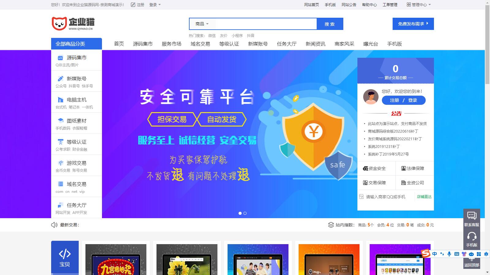 高仿互站网 后台手机端两套模板 电脑端二十套模版,简单介绍几个功能, 支持用户注册开店 开店申请,支持用户发布自己商品 支持卡密形式或实物形式, 支持用户自己发布求助 任务大厅功能,源码完整 更多功能自己去发现吧~