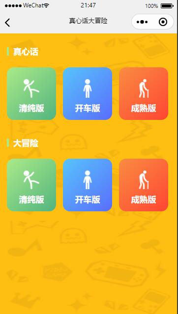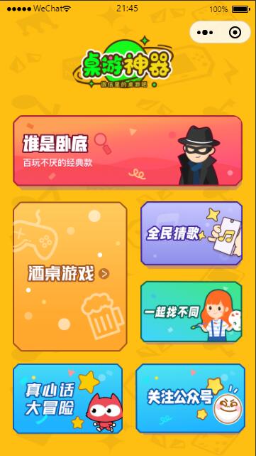 在开发工具测试了下,能搭建出来,功能在7/25测试时正常使用 UI非常漂亮。看着也比较舒服,游戏重要有 1.谁是卧底 2.真心话大冒险