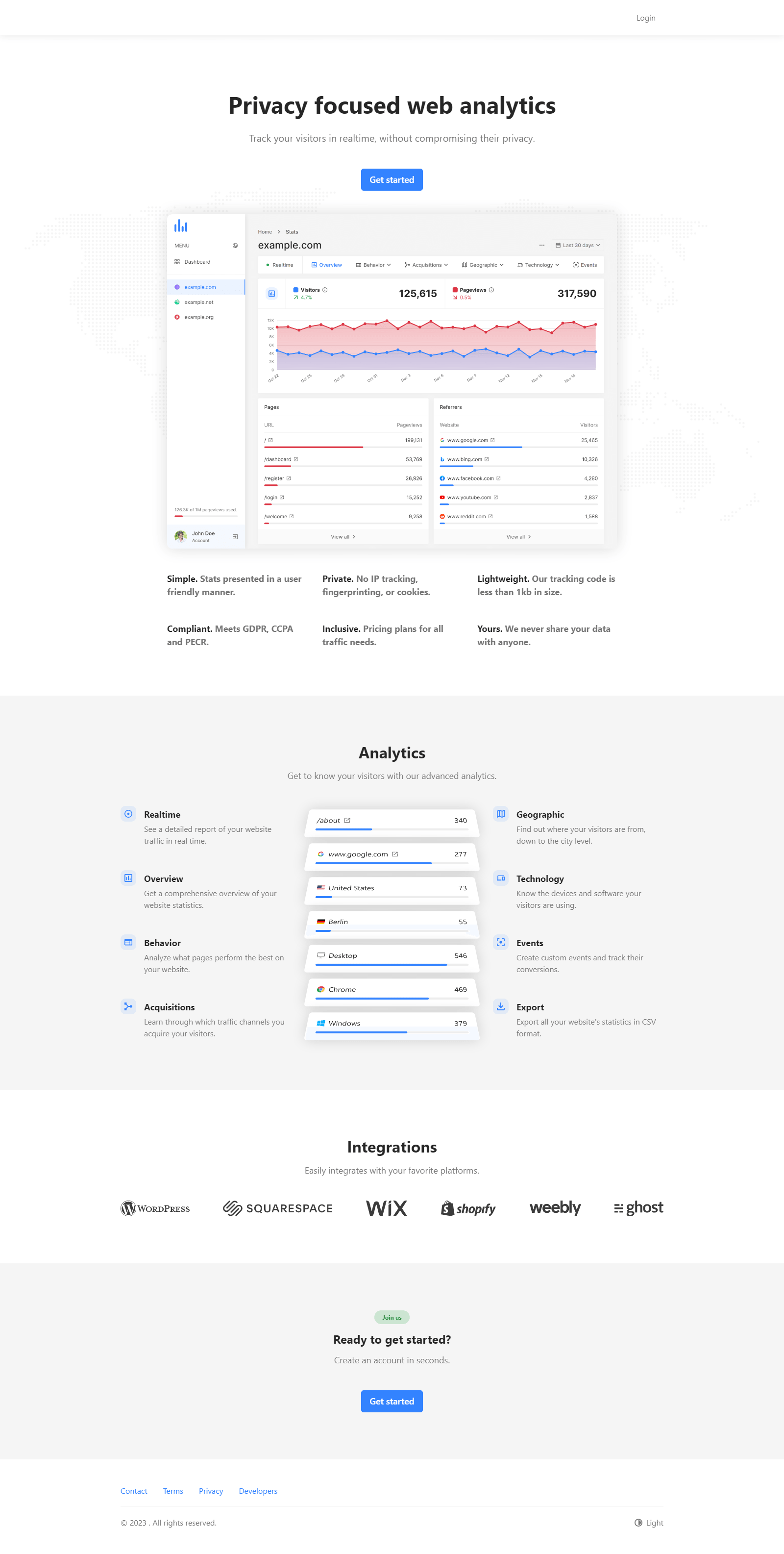 一个专注于隐私的Web分析软件解决方案。我们的方案不仅提供详细的Web流量报告, 例如实时、概述、获取、行为、地理、技术和事件等,而且还非常注重用户数据的保护和隐私。 并提供了更加友好和易于理解的用户界面。包括在管理面板编辑页面时禁用可见性字段、 按发票 ID 搜索时不包括已取消付款的付款过滤器以及过滤结果时不记住用户仪表板日期过滤器等问题。 我们还进行了一些其他小改进,以提高我们方案的使用体验和性能。
