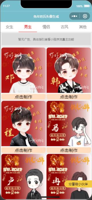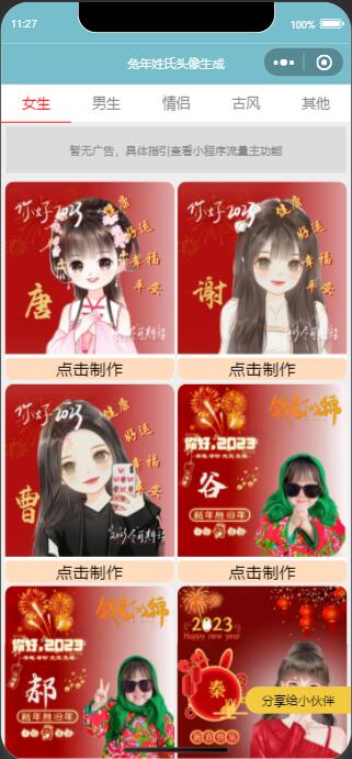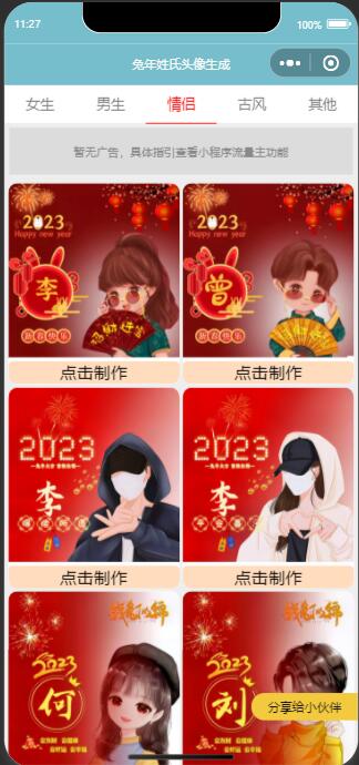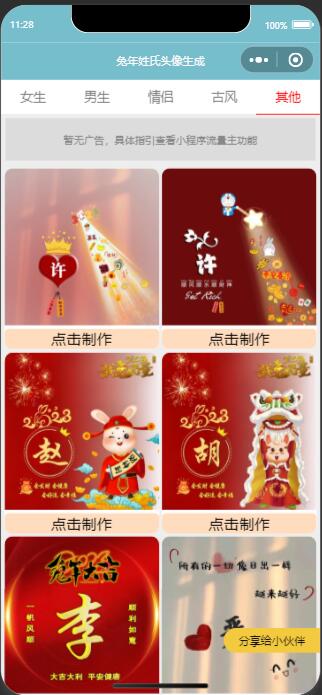 内涵超多丰富的与2023兔年相关的模板 拥有多种分类,另外不定时还会自动更新各种模板 这样让小程序内的模板不会一直都是旧的无新的 所以会更容易留存用户 另外也有多个流量主功能 制作支持拖拽调整位置,自定义颜色,阴影等等 好了具体企业猫就不多说了,大家看演示图吧!
