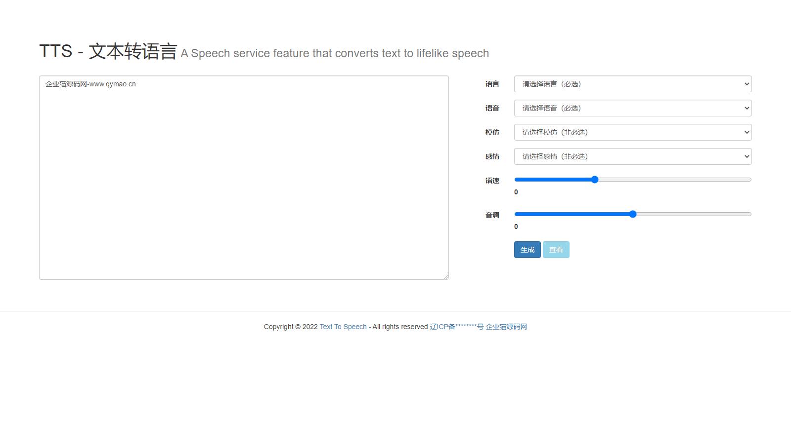 最新微软语音合成网页版源码,影视解说配音网页版, 仅几个文件写成的微软语音合成接口,调用的是官方api,亲测合成很快, 大家总听到的短视频电影解说与搞笑短视频,都是微软配音员,可以说是市面上语音合成中最像真人的了。