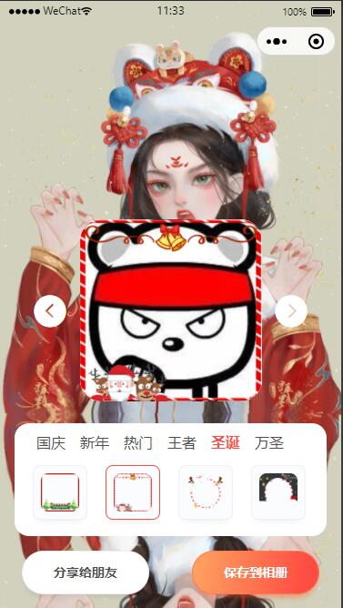 国庆新年圣诞多节日 头像框微信流量主小程序 加了很多素材,不喜欢素材可以自己换