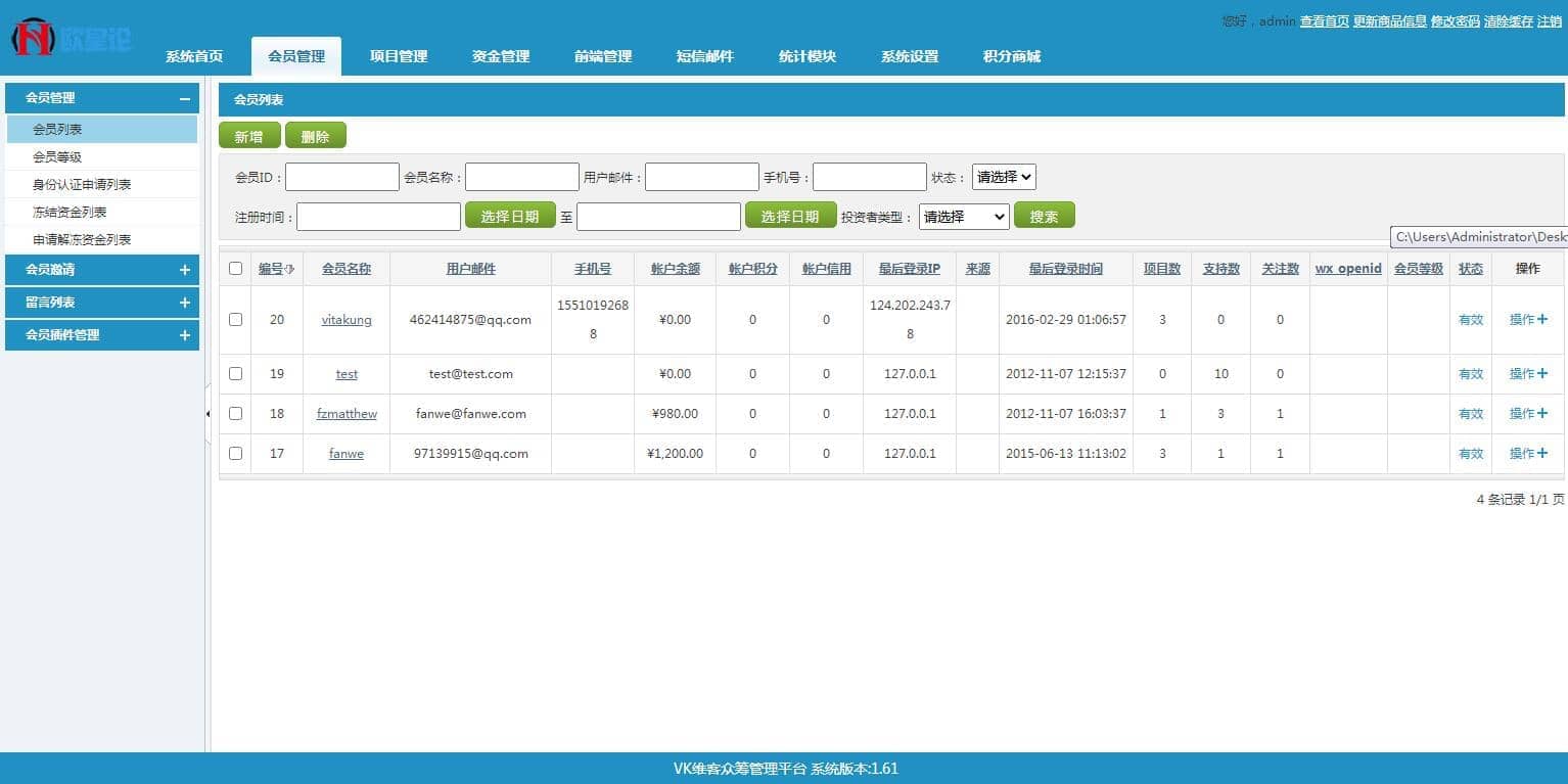 PHP+MYSQL 开发的众筹网站系统,众筹即大众筹资或群众筹资,互联网众筹作为快速筹集资金渠道的一种, 向网友募集项目资金的模式。众筹利用互联网传播的特性,让小企业、艺术家或个人对公众展示他们的创意,争取大家的关注和支持, 进而获得所需要的资金援助。该程序实现了上面介绍的模式,目前众筹网站算是互联网项目经营成本比较低的了。