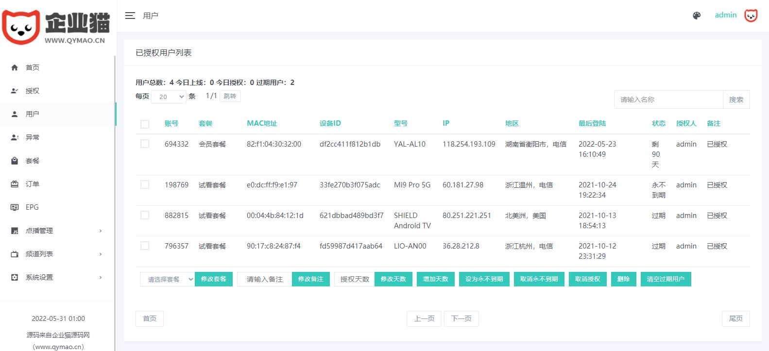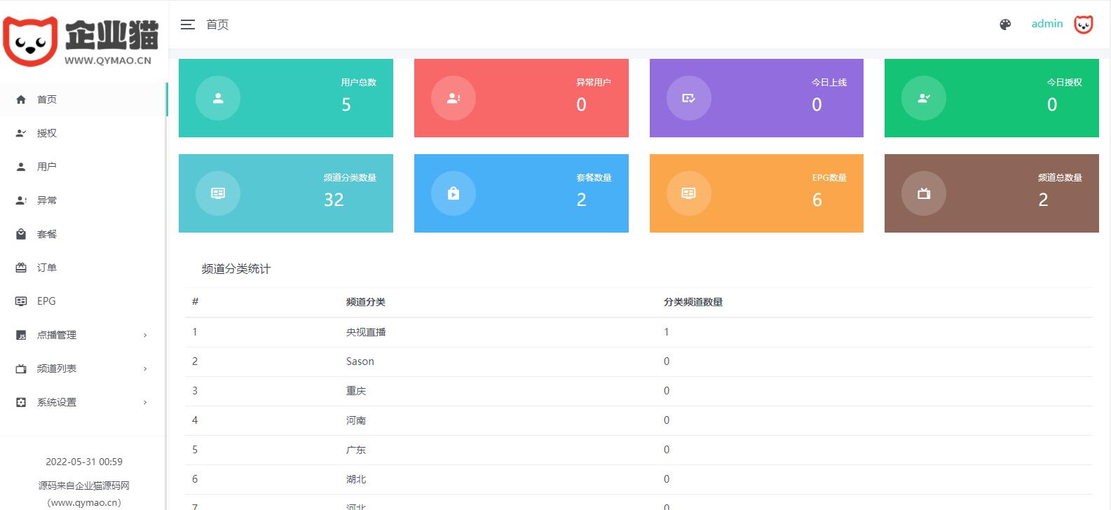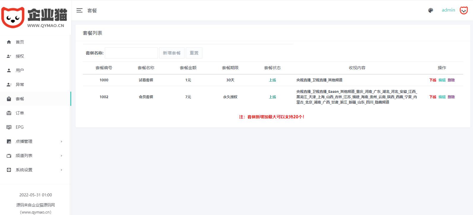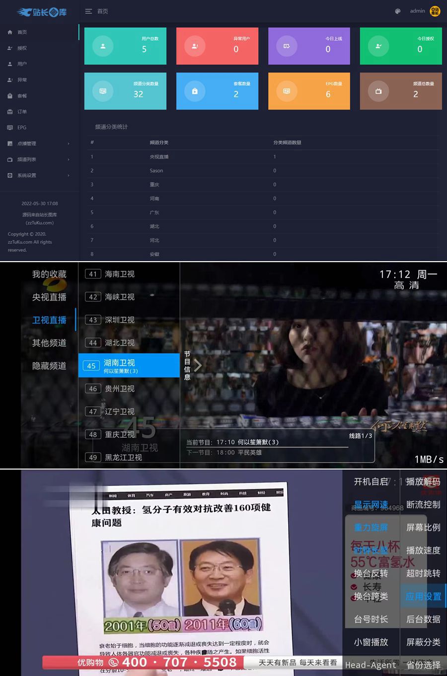 新版骆驼IPTV小肥米二开开源iptv管理系统源码,对接EZtv电视直播管理系统。源码包含iptv后端源码和未加密的apk用于反编译, 是可以运行的,那些说不能用的能不能找找自己的原因吧。 本版本支持:视频直播、本地播放、节目预告(EPG)、视频点播(对接影视资源站)、小窗口模式等功能。 需要注意的是管理后台的应用名和应用包名一定要和APK是一样的,否则会出现网络错误,当然造成网络错误还有其他很多原因。