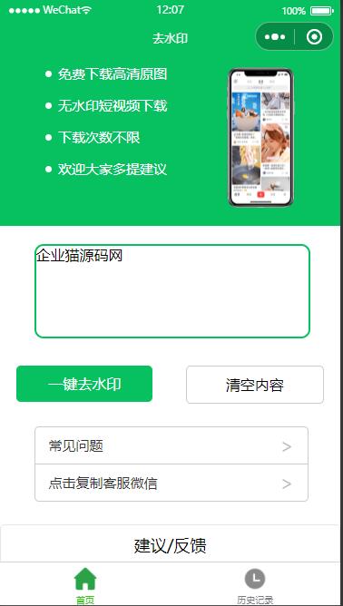 突然发现该接口未备案,上线后可能不能解析。企业猫有时间了再找找看看有没有免费的去水印接口。 免费的比较难找,但付费的百度上一大堆,等不及的可以先使用付费接口玩玩