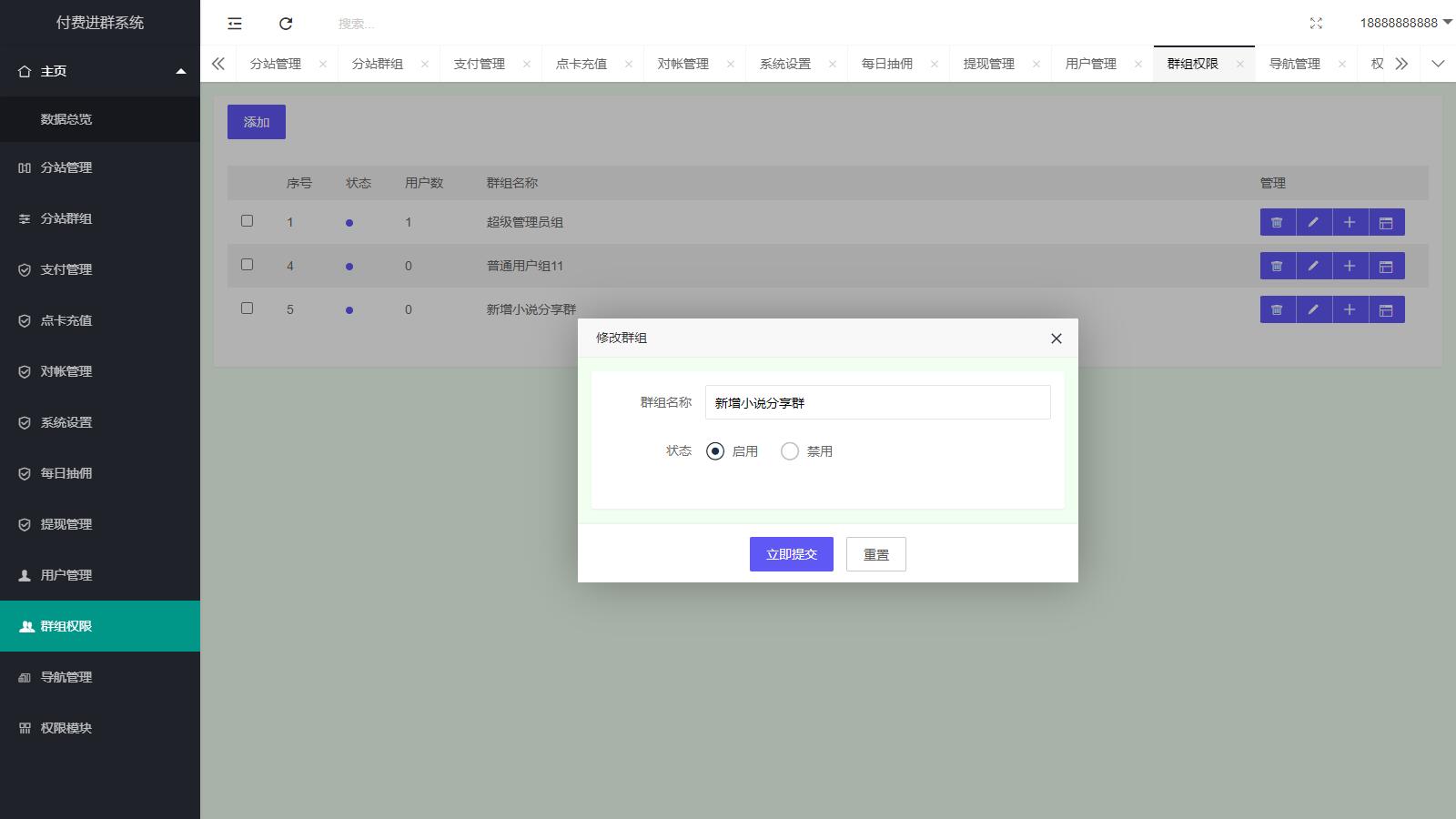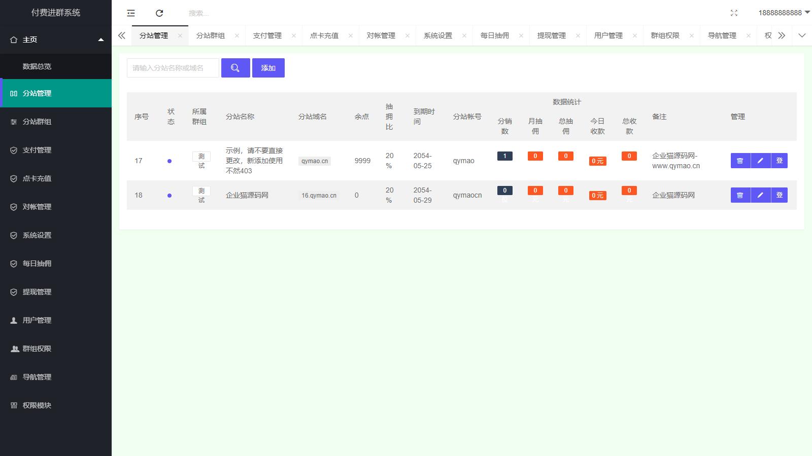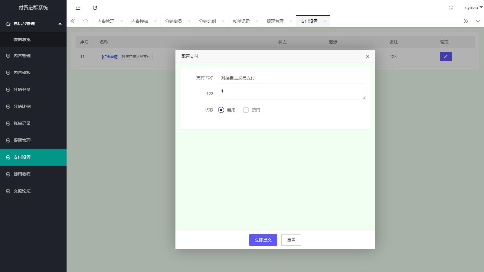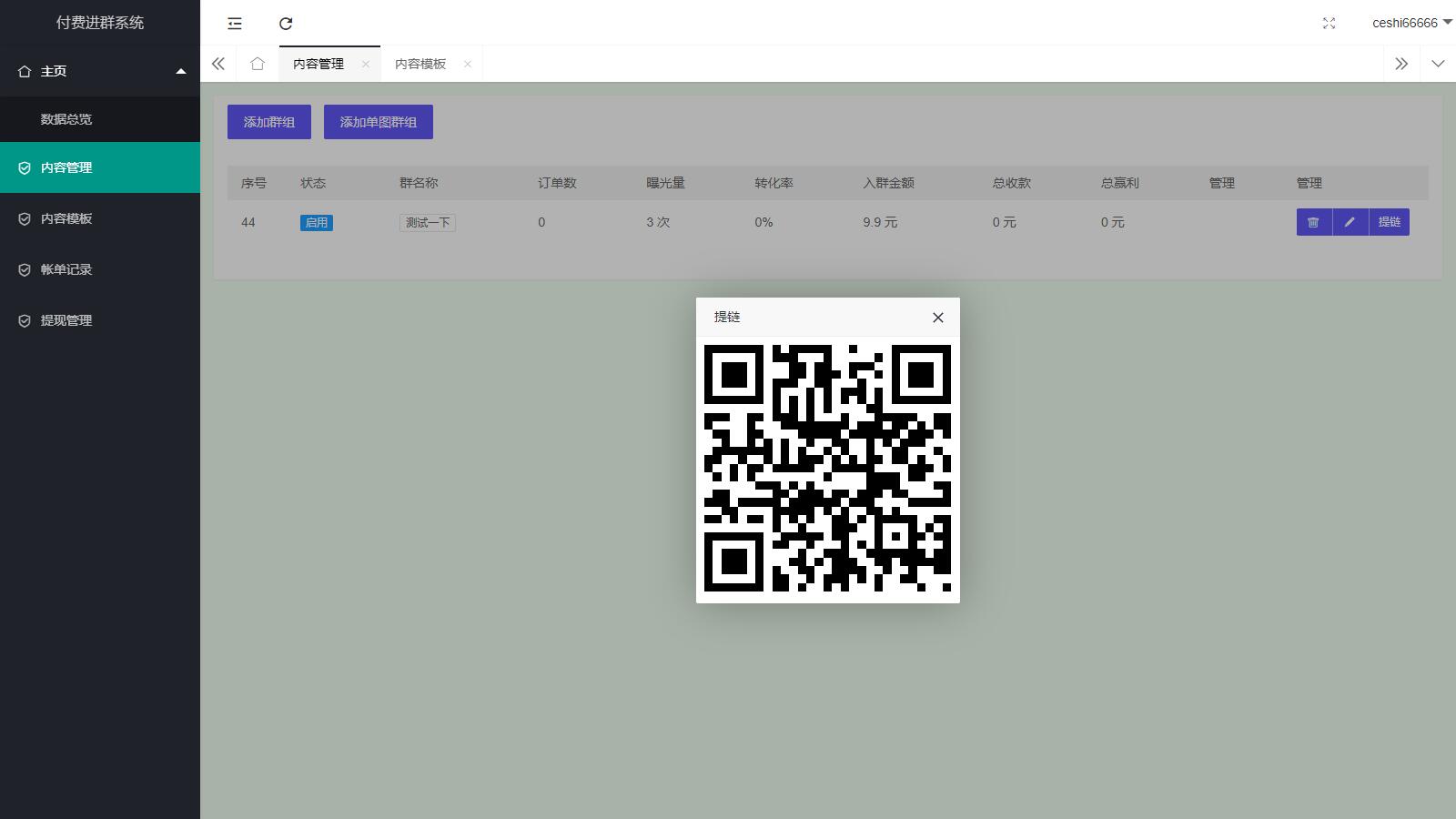 1. 九块九加群微信裂变人脉吃瓜宝妈同城相亲交友取图表情包 2. 支持创建各种付费群,表情,吃瓜,创业,资源等等 3. 支付对接第三方易支付,随便一家易支付平台都可以对接,进群码直接在后台上传就行,简单好操作 4. 不需要公众号,不需要商户号,域名不备案也可以用,完全独立搭建,不需要抽佣扣点啥的