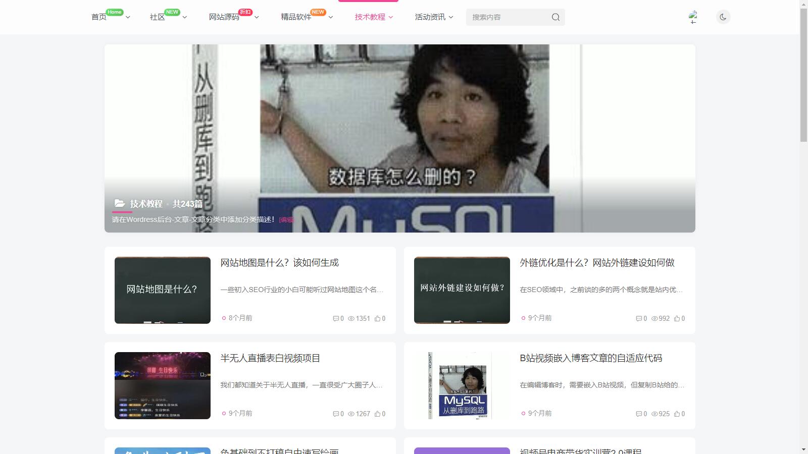 某源码网站近 5000 源码数据打包文件,使用的 WordPress 程序,主题是 zibll 子比主题。 我看了下资源包里面是正版的主题,需要自己找一个破解版替换掉,网上都找得到。带视频教程