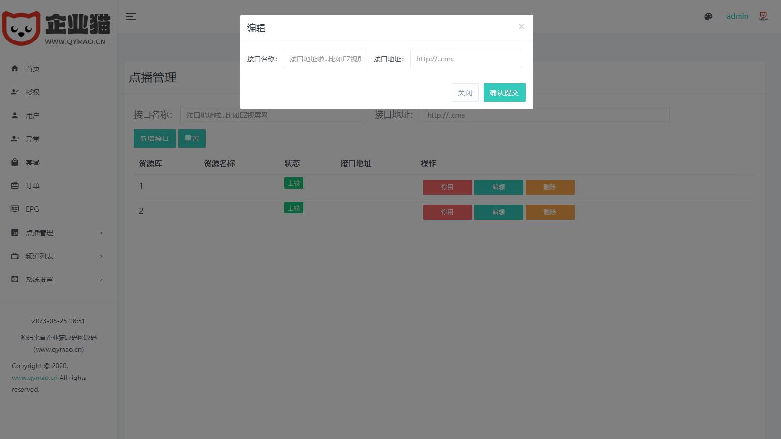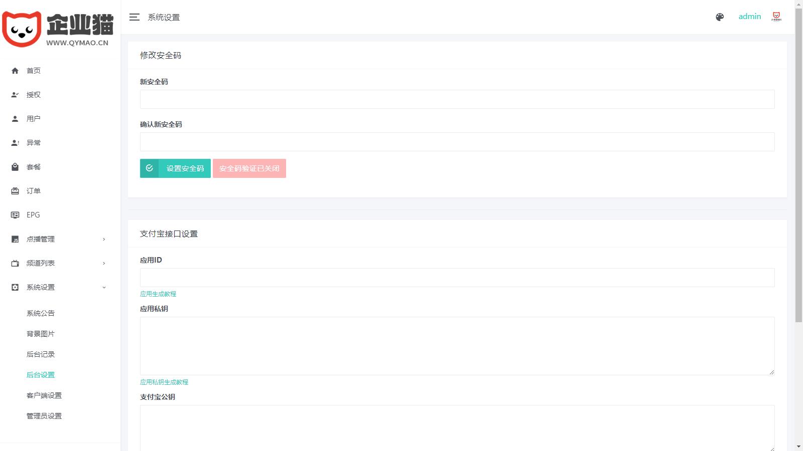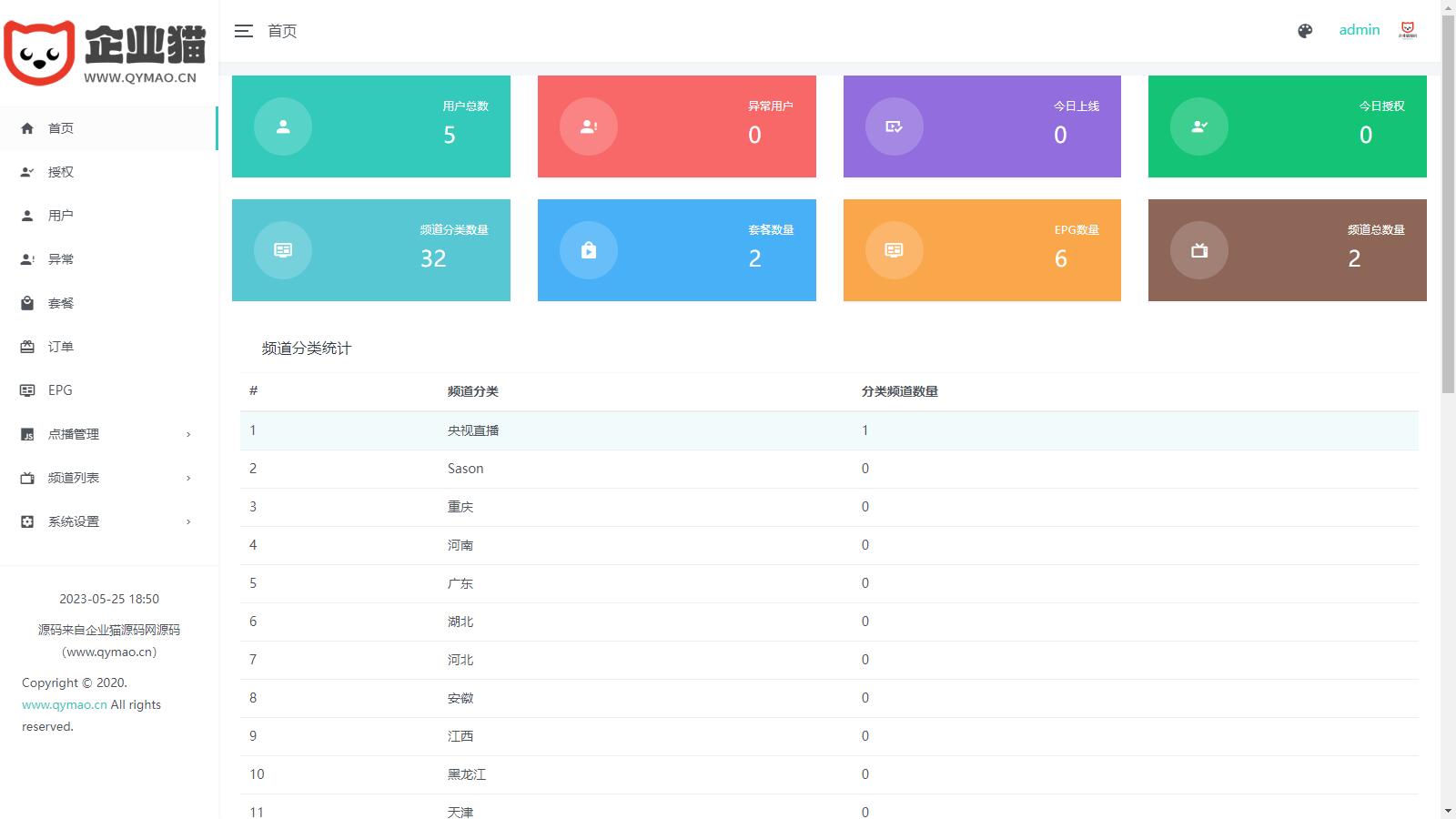 企业猫仅测试了后台,APP我也搞不懂。就没测试,后台是可以正常搭建的。 有反编译视频教程, 全开源电视盒子TV源码,管理系统源码已经二次开发,并且已经与 EZtv 电视直播管理系统对接。 这个源码包含 IPTV 后端源码和未加密的 APK 用于反编译,可以运行。 该版本支持视频直播、本地播放、节目预告(EPG)、视频点播(对接影视资源站)以及小窗口模式等功能。 需要注意的是,管理后台的应用名称和应用包名称一定要与 APK 相同,否则会出现网络错误。当然,造成网络错误的原因还有很多其他原因。 如果需要进行深入的定制,可以反编译 APK 并对其进行修改。