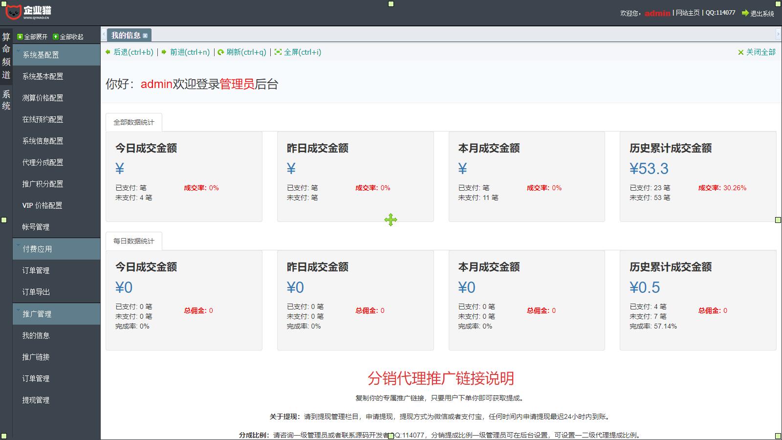 3/25的时候,企业猫重新搭建了下,发下需要授权。暂时停止下载 前两天发的那个是别人发出来的引流版本,没数据库文件, 这次是别人投稿的。企业猫搭建了下,可以正常搭建出来。以下为搬运的源码介绍 支持功能:微信 / 支付宝的 PC 支付和 H5 支付、分销功能、支持设置一二级分成比例、微信功能、 支持 PC 版支付、手机版支付、微信内支付。 本程序付费测算组成,测算程序 220M,数据库 55M 为本地数据。程序为开源二次开发,已修复大量 BUG