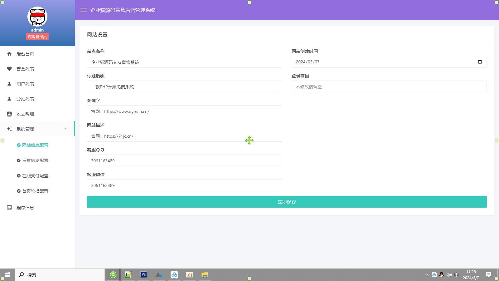 交友盲盒系统是一款基于PHP开发的开源免费盲盒系统, 旨在为用户提供一个充满乐趣和惊喜的社交体验。该系统具有丰富的功能和灵活的扩展性, 可以轻松地满足各种线上交友、抽奖活动等场景的需求。