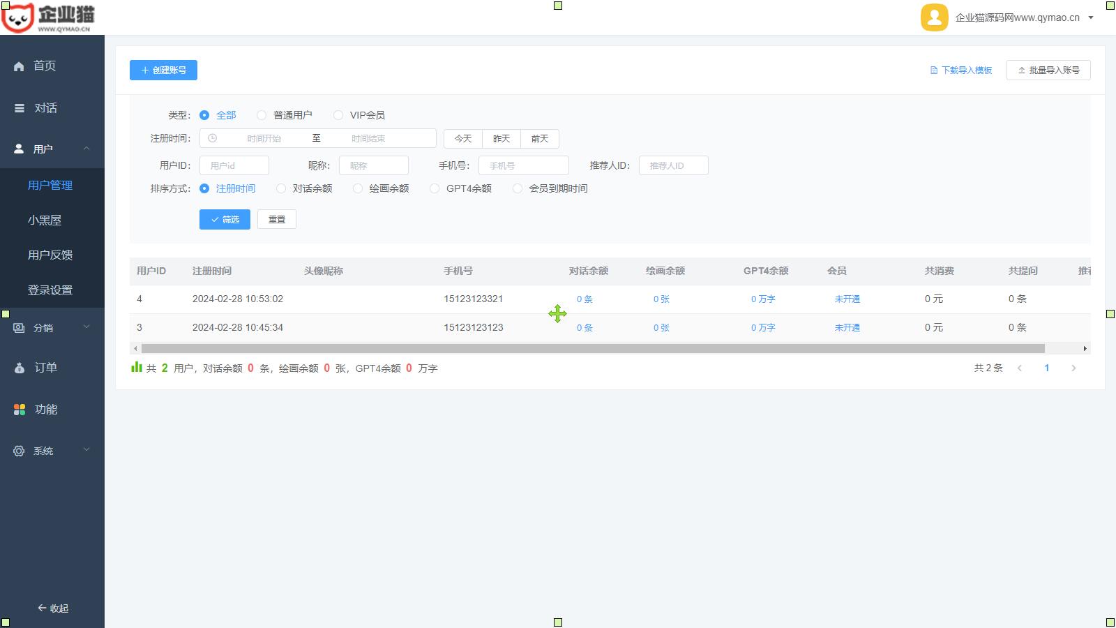 亲测总后台截图: