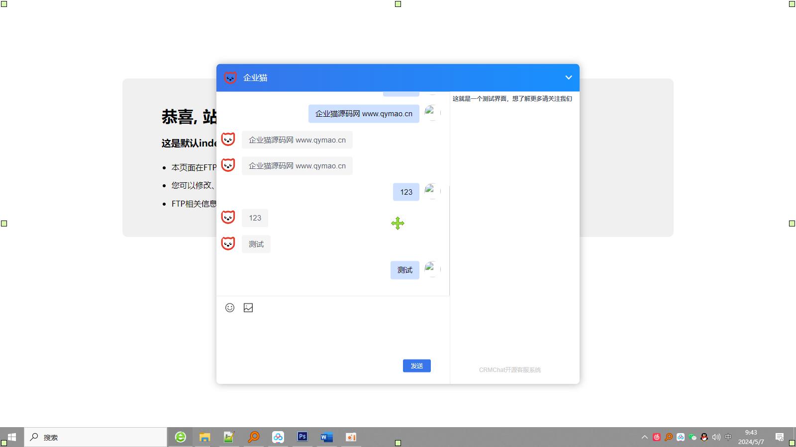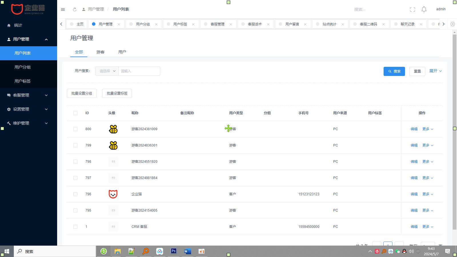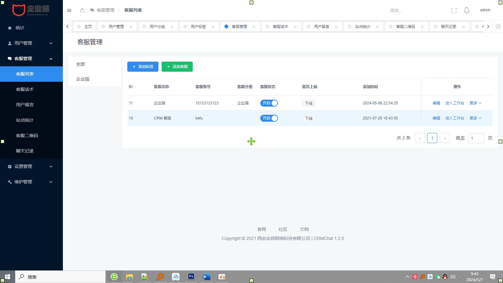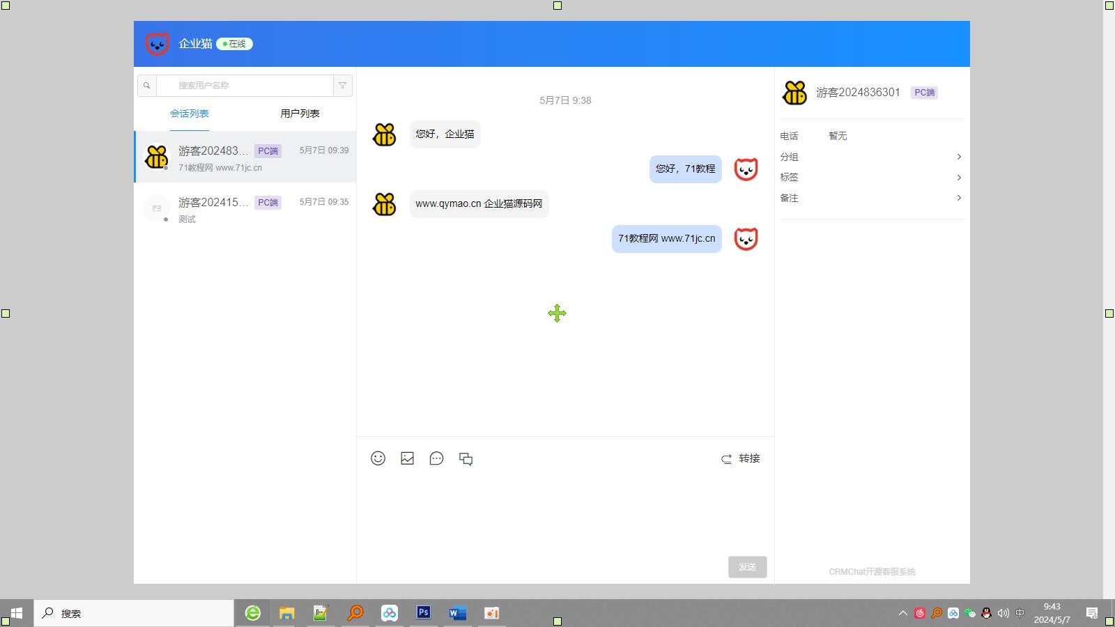 本系统(CRMChat)是采用Swoole4+Tp6+Redis+Vue+Mysql开发的独立高性能客服系统, 客服系统用户端支持Pc端、移动端、小程序、文章中接入客服,利用超链接、网页内嵌、二维码、 定制对接等方式让网上所有通道都可以快速通过本系统联系到商家,商家端支持Pc端、移动端(App) 随时随地接收到用户的各种咨询,商家可以添加话术库、也可以对用户进行分组、加标签、加备注进行管理, 是一款互联网链接商家的一个桥梁,也是商家客户管理的工具,本开源项目遵循最开放的木兰协议,可以随意使用。