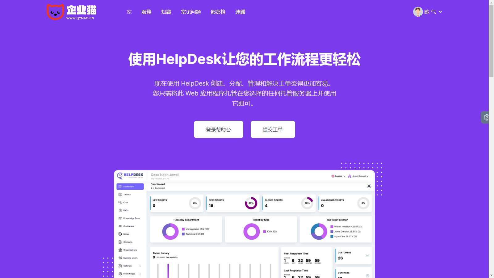 开心汉化源码轻量工单知识库程序网站,一个强大的工单管理系统,可以管理大量数据。 这是一个使用Laravel、Vue.js和InertiaJS制作的单页应用程序。 您不需要任何其他网站,因为帮助台的首页支持博客文章、 常见问题解答、服务、隐私政策、条款、知识库等。