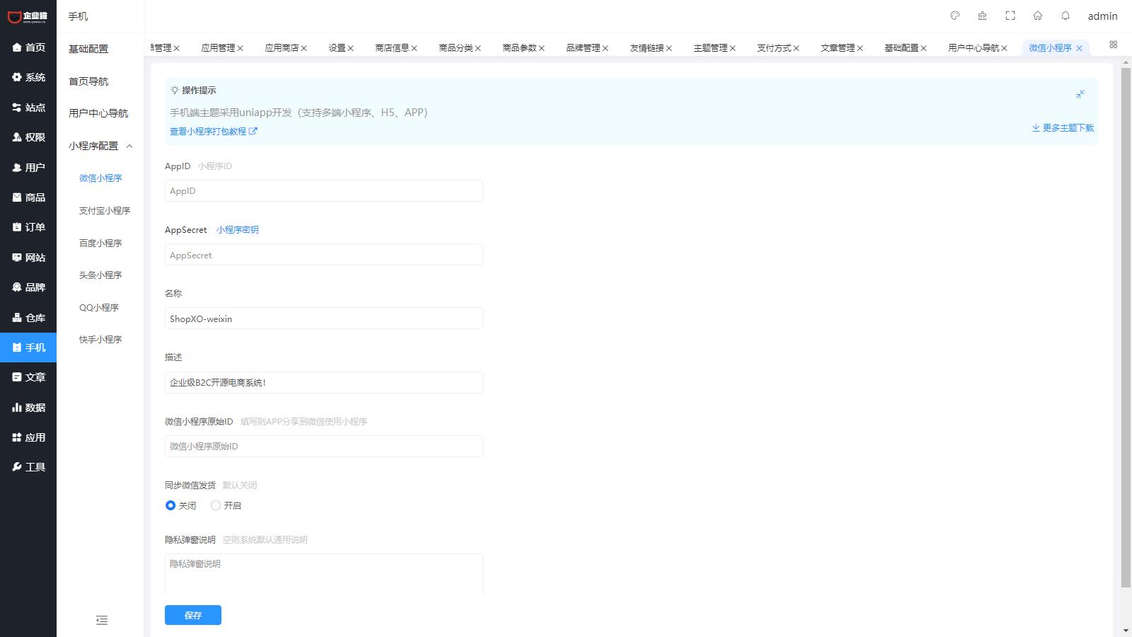 后端支持依托于ShopXO免费开源电商系统开发的uniapp端主题源码 内置8中搭配主色(可自行扩展更多配色)、自由快捷切换适应各大行业需求 已支持小程序(微信、QQ、百度、支付宝、头条&抖音、快手)+ H5 + APP App.vue中修改 request_url 和 static_url 地址为自己的商城地址即可使用 主题默认为红色(red),如更改主题 App.vue文件中修改 default_theme 默认主题标识, 也可以到商店搜索【默认主题样式】远程控制主题配色