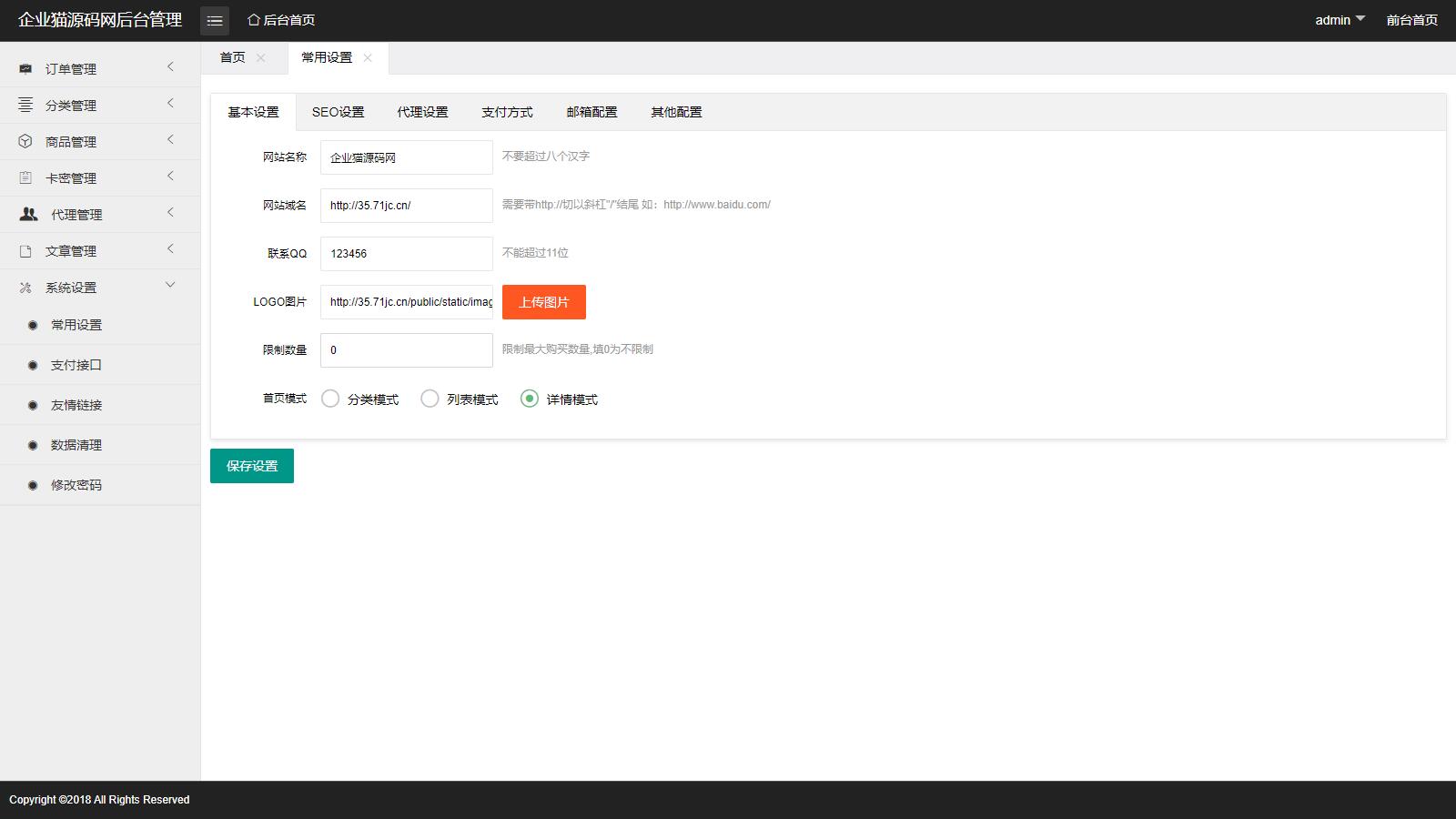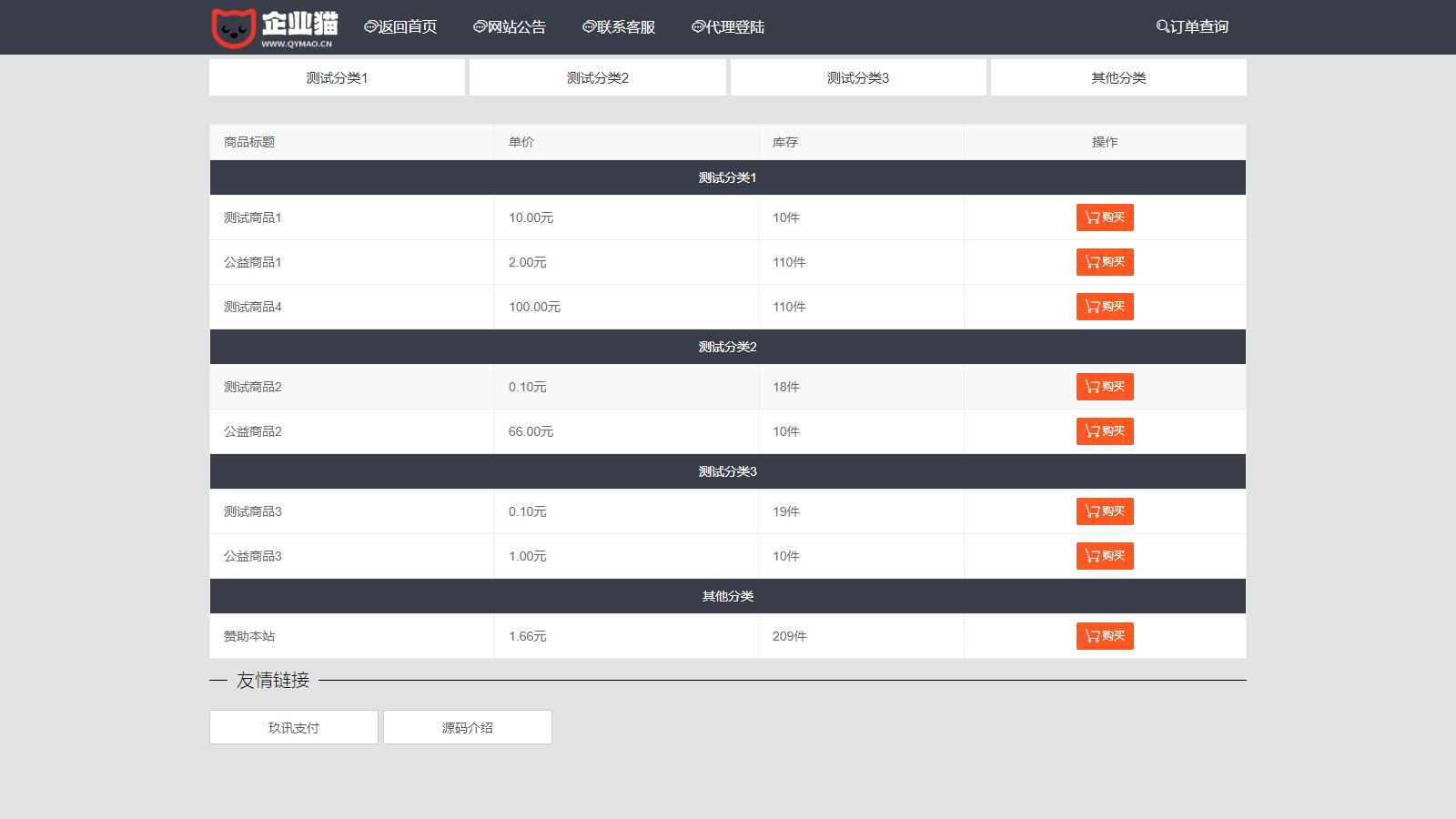 三种首页模板样式可供选择,已对接免签支付.24小时自动发货! 企业猫简单搭建了下,支付接口应该是挂了,需要自己替换下支付接口