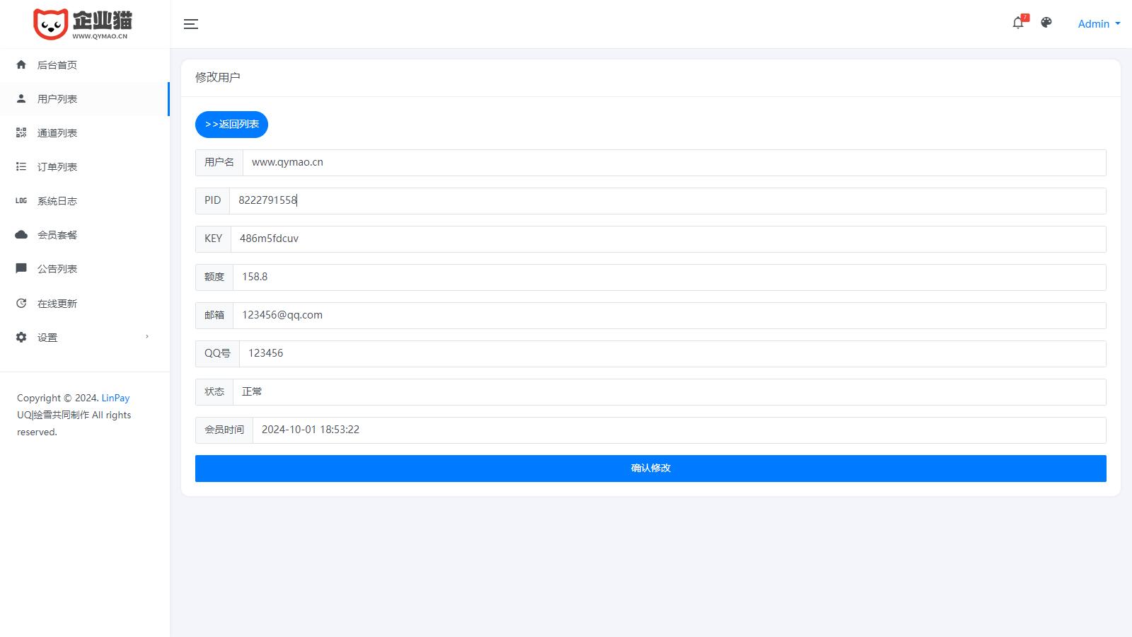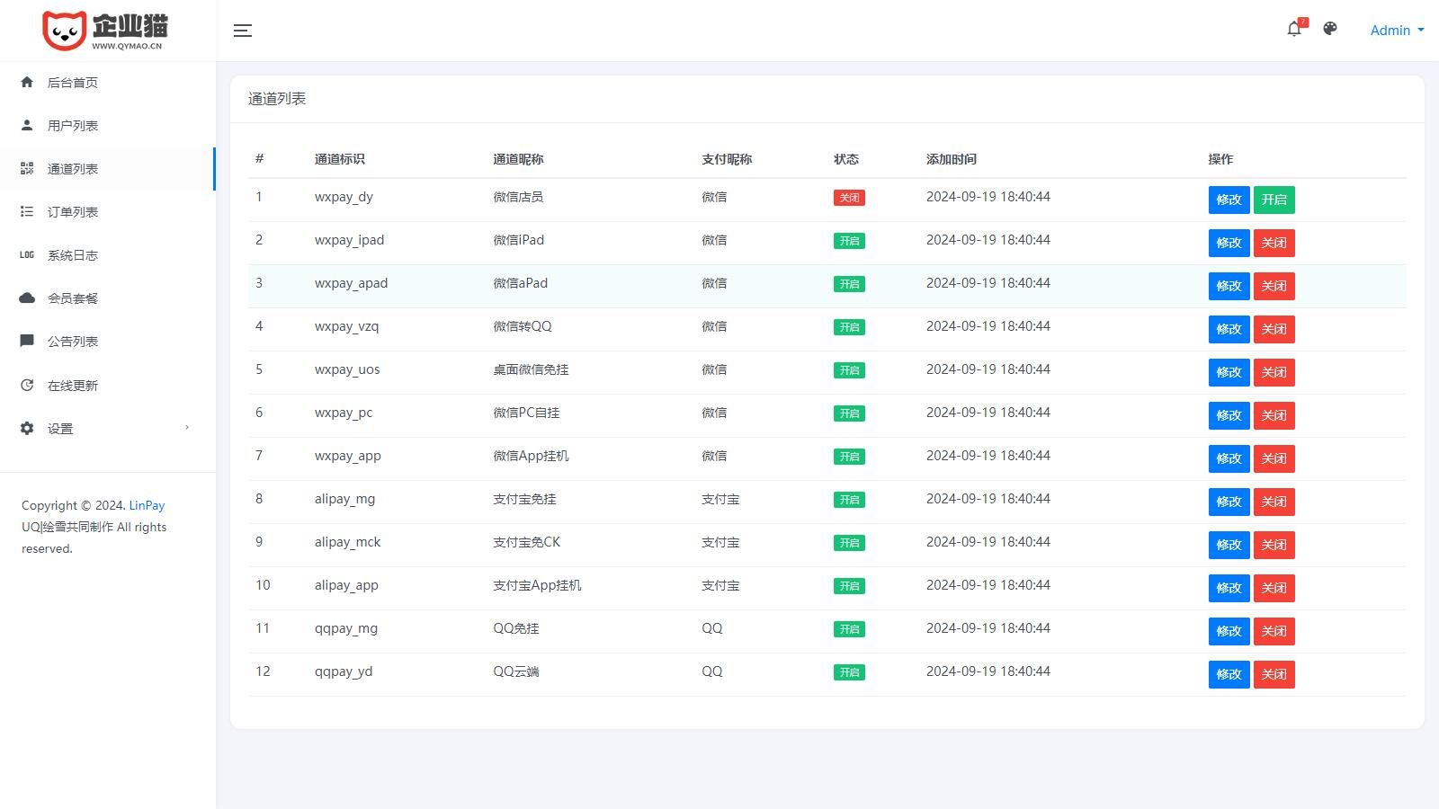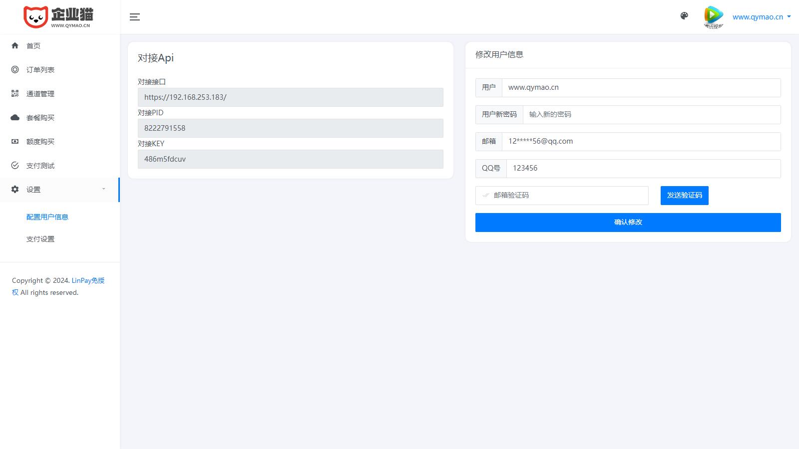 LinPay码支付是2024年8月25日上线的一款新码支付,属于第四方支付不需要支付许可证云拍照, 服务集成商兼容市面所有易支付,兼容所有商城LinPay是专为个人站长打造的聚合免签系统, 拥有卓越的性能和丰富的功能。它采用全新轻量化的界面UI,让您能更方便快捷地解决知识付费和运营赞助的难题 企业猫在9/19看了下源码。发现加密文件较多,但可以正常搭建,后台也可以升级版本。