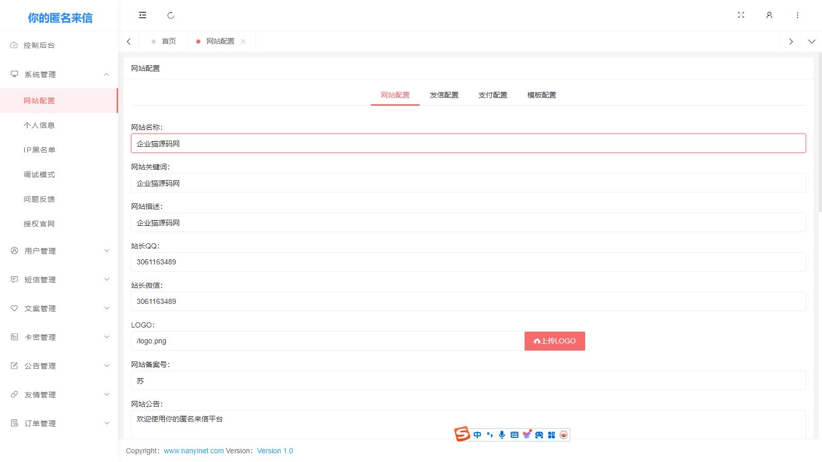 你的匿名来信H5一封你的来信源码/表白祝福短信程序/往来信/传话短信源码