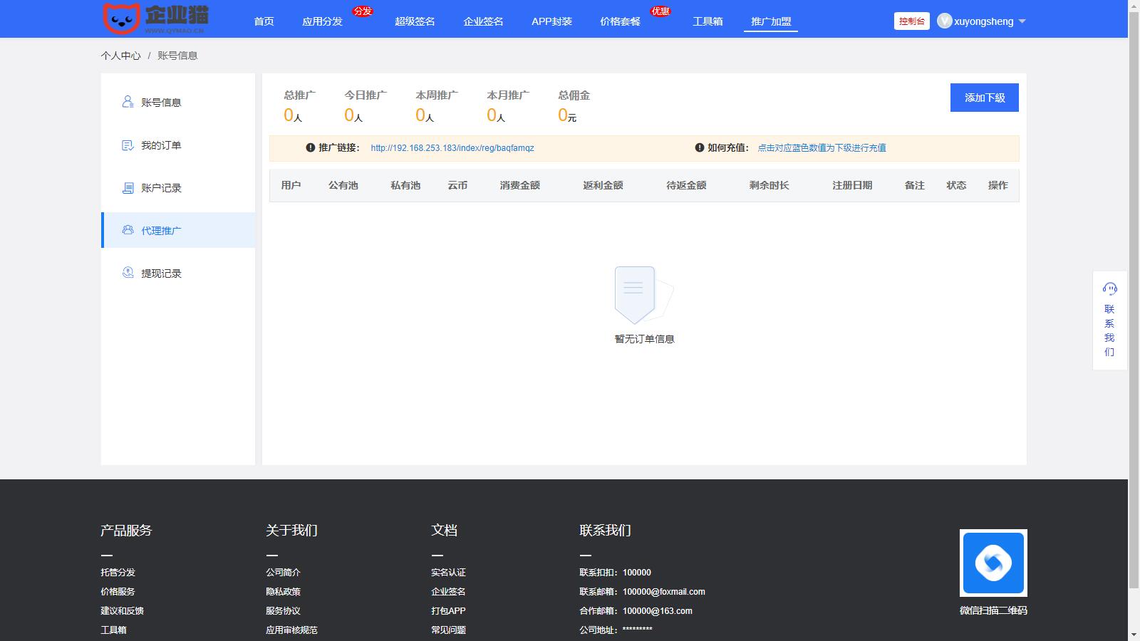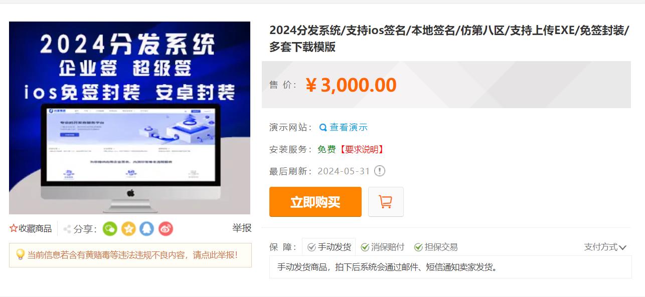 1.本程序支持安卓和苹果及EXE程序分发,上传后自动判断,通过技术手段已经让IOS和安卓用户稳定安装 2.智能提取APP应用信息,自动生成IOS应用PLIST,自动获取应用图标,开发信息,方便用户在测试 3.分发应用根据应用大小扣除对应的下载点数,合理的收取点数更贴合用户使用 4.企业签名在线一键提交,注入时间控制更方便的管理,签名端只需要要在本地即可完成 5.签名专属下载页面,用户可以生成下载码进行安装,使用签名脚本在服务器直接完成, 无需使用第三方工具,支持公有池和私有池,支持推送,可以签任意安装包 (市面有的签名不能签含中文的安装包,编译过的安装包不能直接重签) 6.支持安卓和ios合并分发(签名支持) 7.全站所有应用文件存储阿里云、七牛云,降低服务器下载负荷 8.支持中文包,下载安装码, 9.秒签下载,远比一些系统签名速度慢,下载时间长。 10.后台用户管理增加:添加用户功能,后台可手动去给客户添加账号。 企业猫搭建了下,可以搭建出来,但企业猫使用的是宝塔是基于Debian 12的,没办法安装和教程上一致的数据库版本, 有可能是因为这个原因导致前台点击注册按钮无法成功注册,但我看我搬运站放出来演示站了,可以正常注册。 源码大概率是没问题的,也有小概率可能是企业猫不会JAVA,就没布置JAVA部分源码导致的, 感兴趣的自己下载下来瞅瞅吧