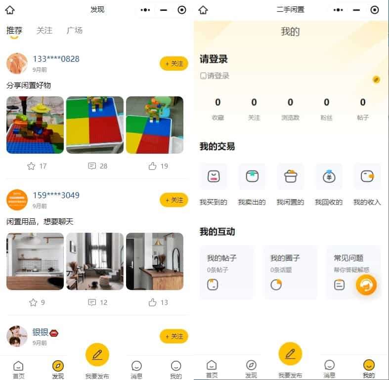 1、多城市:支持切换到不同城市,查看当前城市下的二手商品信息 2、卖家认证:卖家发布商品需要先进行认证 3、二手商品:两级分类,支持搜索,查看商品介绍,收藏、分享、购买 4、配送方式:发布二手时可以设置快递或上门自提两种配送方式 5、发现:帖子集市,分推荐、关注、广场三个板块 6、圈子:可以加入感兴趣的圈子 7、关注:可以关注好友,查看好友帖子 8、消息:包含系统消息、互动消息 9、我的收入:显示我的总收入以及明细,在线申请提 10、用户主页:包含对方简介,发布的宝贝、帖子,一键关注对方 11、高价回收:发布高价回收信息 12、聊天:可以和卖家在线沟通,咨询产品情况、价格