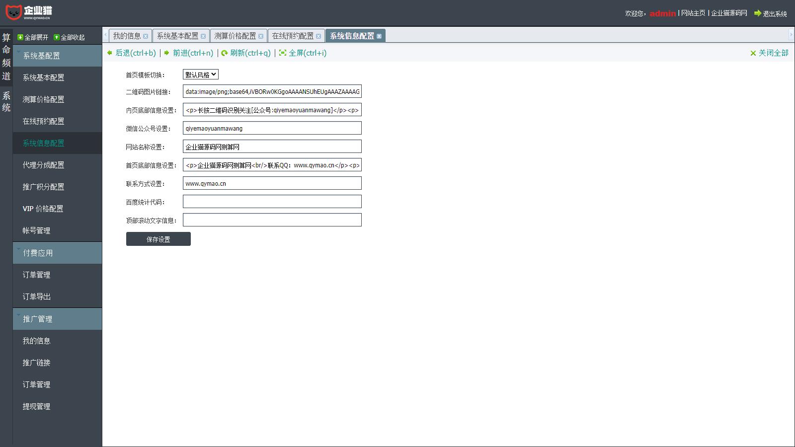 企业猫亲测后台截图:
