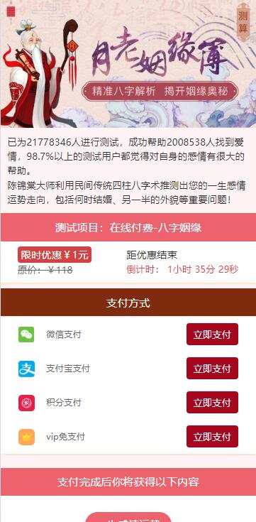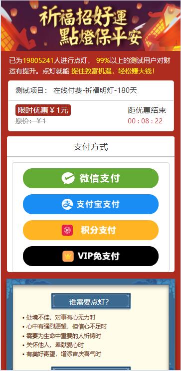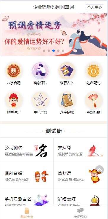 市面上的版本基本都是这版二开来的,这套没有加密模板啥的都是开源的,修改了旧的数据现在里面是25年的 带三级分销,对接的官方支付和易支付怎么搭建在里面也写好了,直接可以上手了!原版开源 起名、星座、塔罗牌、姓名配对、公司起名、手机号吉凶、祈福点灯等等功能太多说不清 企业猫和会员一起测试了支付,支付可以正常回调, 另外企业猫修复了祈福点灯页面支付按钮显示不全的bug