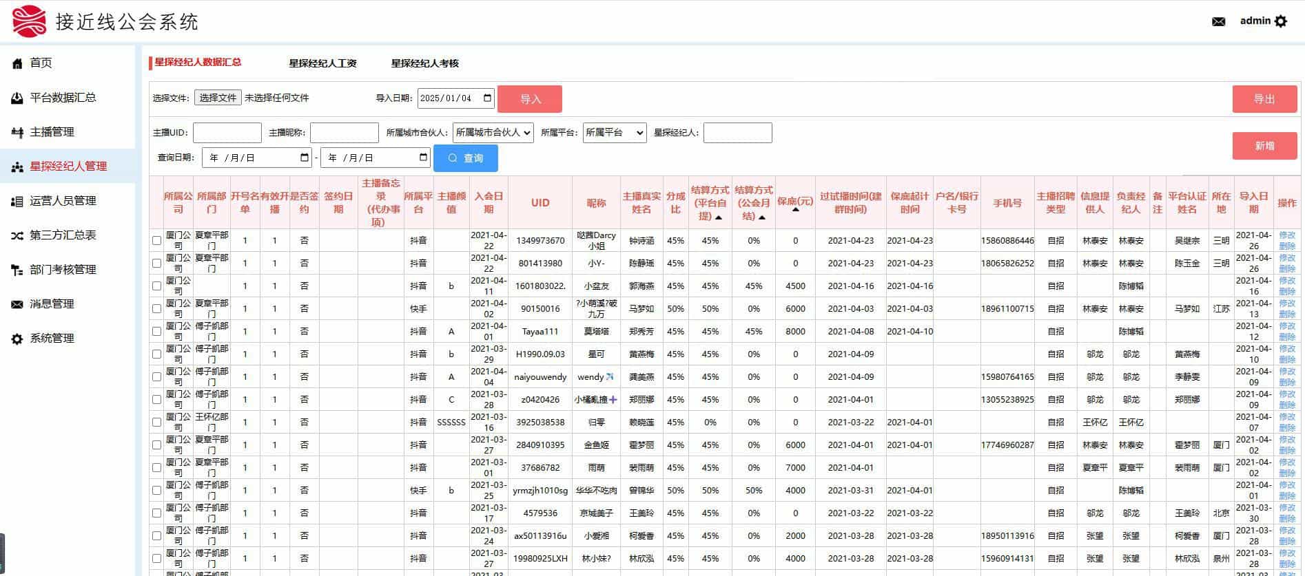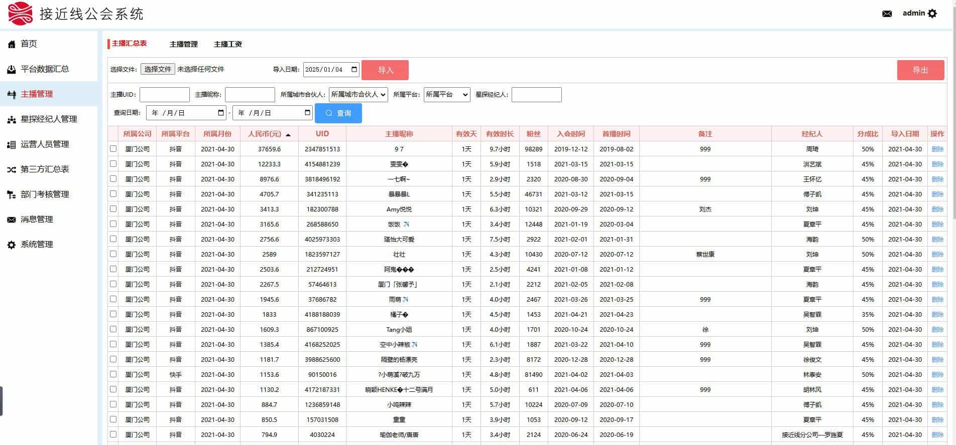 工会系统抖音快手等多平台主播分红分润系统星探经纪人城市合伙人多角色管理系统分红统计系统 企业猫搭建了下,应该是比较老的源码。后台页面打开速度较慢,但可以正常打开。