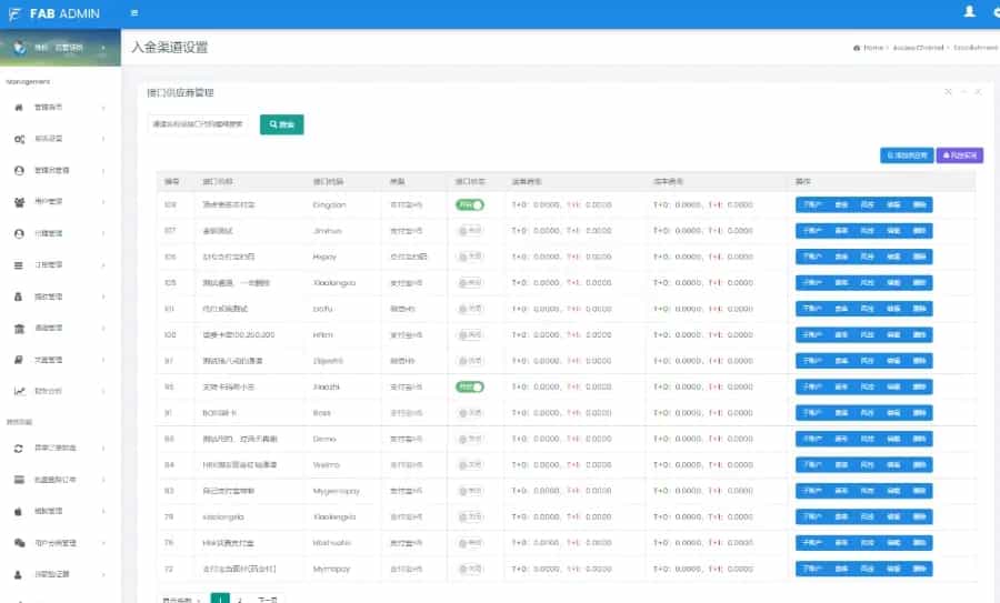 1、支付类型可包含 H5、当面付、公众号、扫码、银联、快捷; 2、结算类型包含 普通结算、代付结算、手动结算; 3、枫控限制 轮询、IP限制、金额限制、当日总金额等; 4、完整的账单统计; 5、文档分为在线文档和可下载文档压缩包; 【应用场景】作为第三方、四fang支付平台。该有的功能都有。 作为可以对接微信支付宝官方接口也可以对接第三方支付接口还可以对接免签约接口还可以对接微信公众号支付支付宝当面付、 对接其他四fang支付系统、pao分系统等.可以多通道轮训,可对单个帐户设置多种规则。 【帐号类型】系统后台多类型管理员、商户代理、普通商户、接口用户;对用的板块后台都不一样相关的数据统计齐全有效。