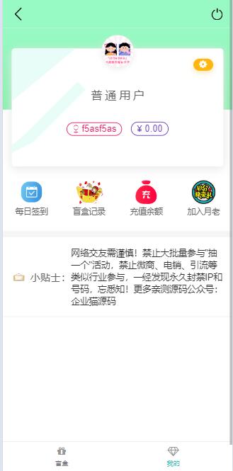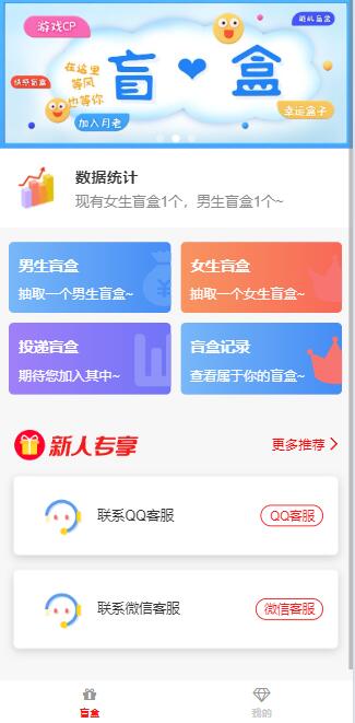 最新 PHP 开发的交友盲盒系统源码,免微信公众号, 此款一元抽纸条盲盒交友源码已对接易支付,无需商户号,再也不用担心商户被封了。 免公众号网页版盲盒源码,不用再去花 300 块认证服务号啦,盲盒交友持续火爆中~~~ 企业猫搭建了下,发现前端和以前的一款几乎一模一样,但后台不一样。应该是更新版或者二开的。