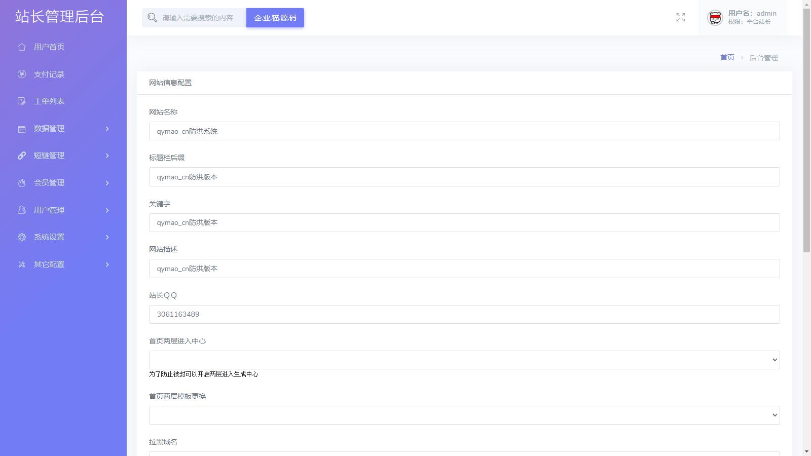企业猫搭建了下,发现有加密,然后必须得在根目录放一个某站的广告文件才能访问 源码中该站广告较多,自己玩玩学习一下可以,