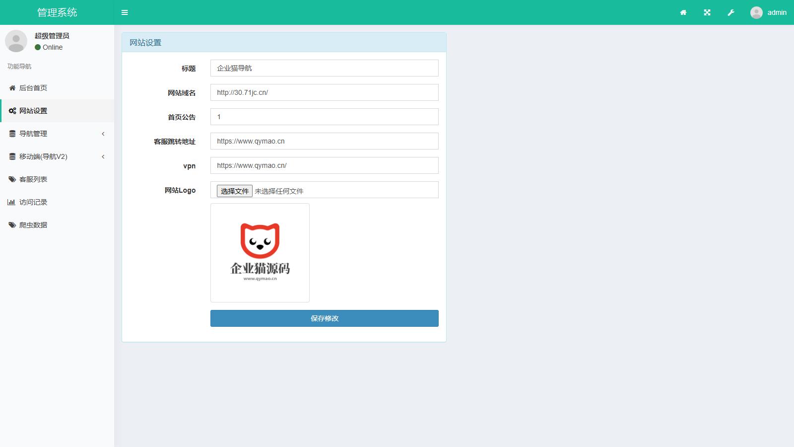 企业猫搭建了下。各页面可正常打开,导航自带的数据指向的是些不好的地方,企业猫大体的修改了下
