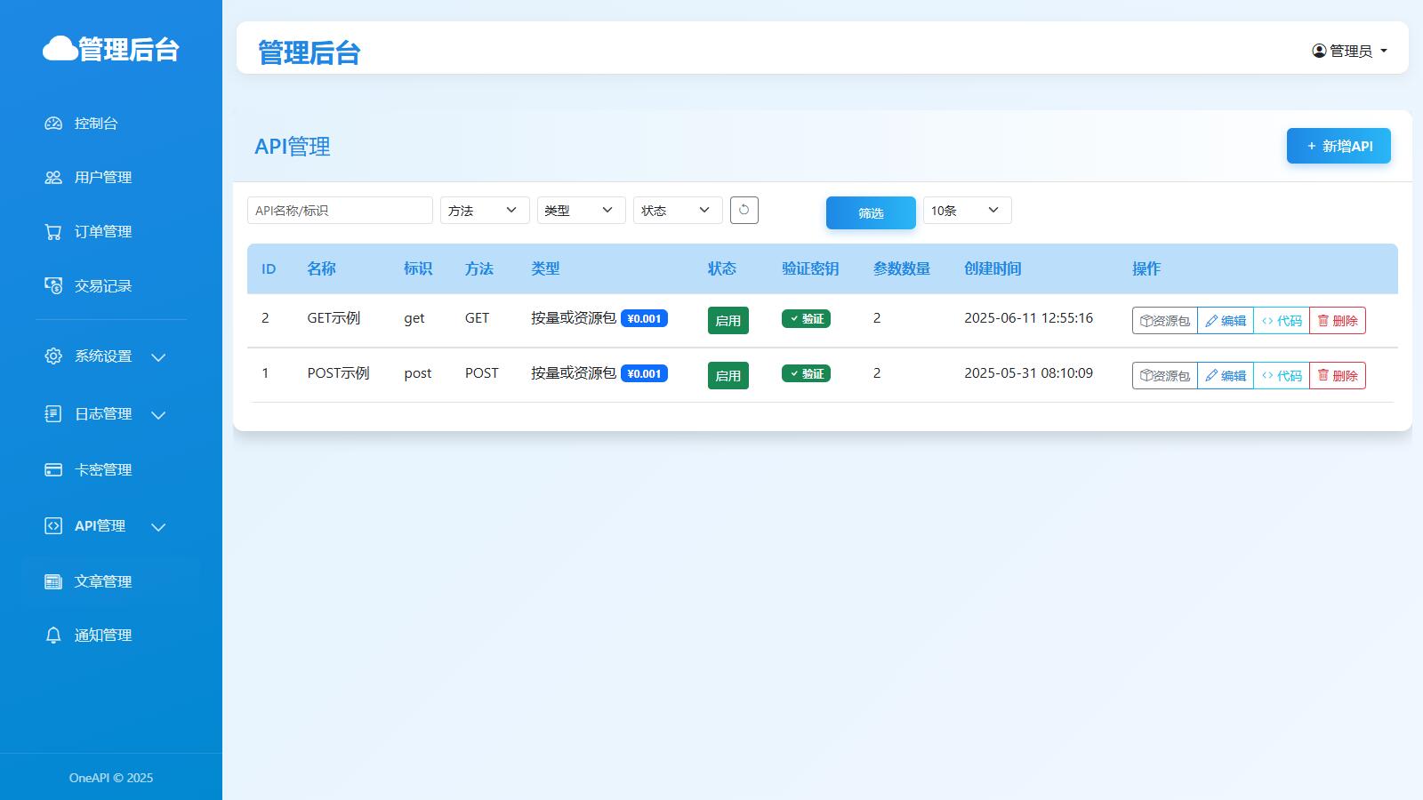 OneAPI 是一款多功能的接口管理系统