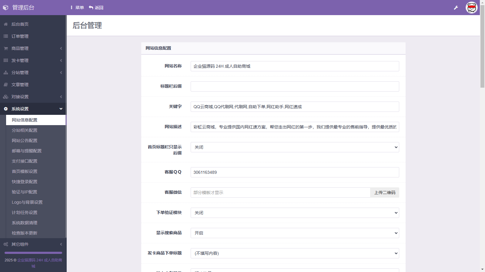 这套源码用的彩虹发卡程序,功能还是挺多的,支持开通分站,下单邮箱提醒,后台有 20 套前台模板,也可以改做其他站点